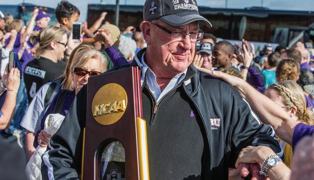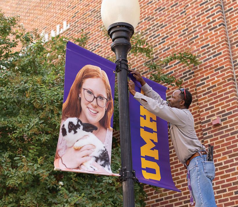 This summer, the new logo, brand and rally cry welcomed returning students in bright purple and gold messages across campus. Motivating, stu dent-centric messages encourage students to also “grow, learn, believe, lead, serve, excel and play” on purpose.