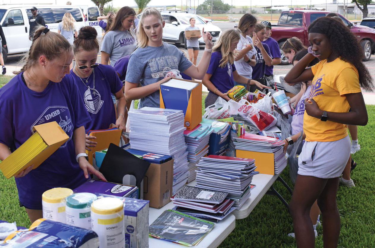 Just after UMHB started back for the semester, the team took three vans to Uvalde, with each back seat and trunk area filled with supplies. The team collected enough to provide 70 to 75 kids with school supplies and also classroom cleaning supplies, said Coach Mark Morefield.