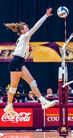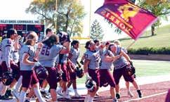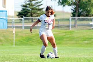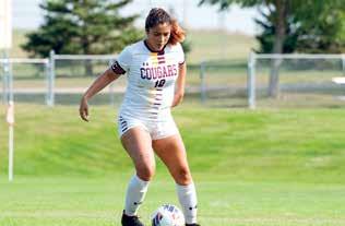 A midseason five-game winning streak set the stage for a big finish for Cougar football until key injuries in the final two games saw a potential UMAC title slip away. Nevertheless, it was a second consecutive 5–5 season for UMN Morris and one that saw the introduction of two new highimpact players. Chayce Meyer ’26 was named the UMAC Defensive Player of the Year in his freshman season after leading the conference in tackles for a loss (16.5) and sacks (9.5). In addition, Meyer set a school record with six forced fumbles on the year. On the offensive side of the ball, Izayah Boss ’25 ran for 825 yards and 10 touchdowns in his sophomore campaign. Both players were First Team All-UMAC performers, and each was named Third Team All-Region by D3football.com.