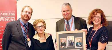 Dinner with scholarship recipients and Acting Chancellor Janet Schrunk Ericksen in 2022 Edward and Helen Jane at the 2013 dedication of the Edward J. and Helen Jane Morris Gallery in Humanities Fine Arts Dedication of the Edward J. and Helen Jane Morrison Performing Arts Center in the Student Center in 2018: Jim E. Morrison, Helen Jane, Jim Morrison, Liz Morrison