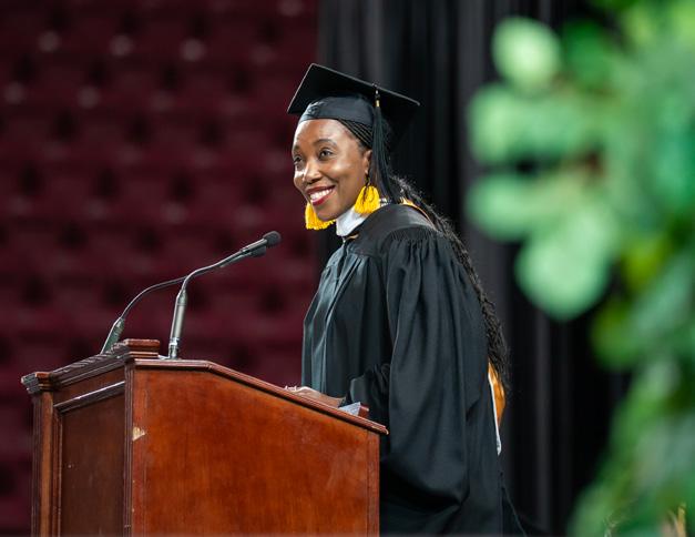 The graduating MA in Strategic Communication cohort cuts up with Scott Meyer. Ethelind Kaba (MA in Strat Comm ‘22) gives a commencement address.