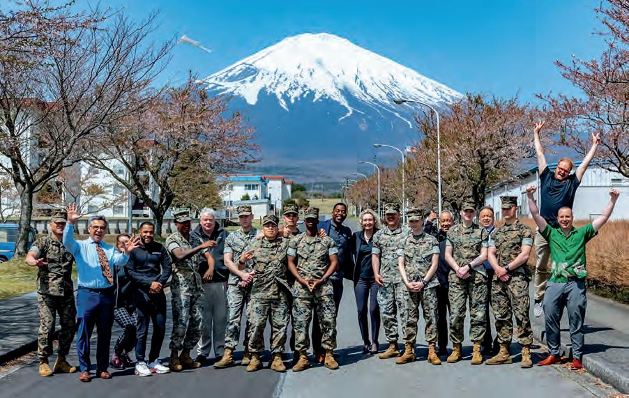 President Gregory Fowler (center) with UMGC students and staff at Camp Fuji in Japan.