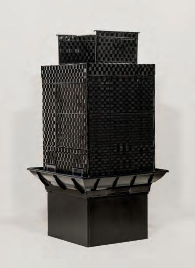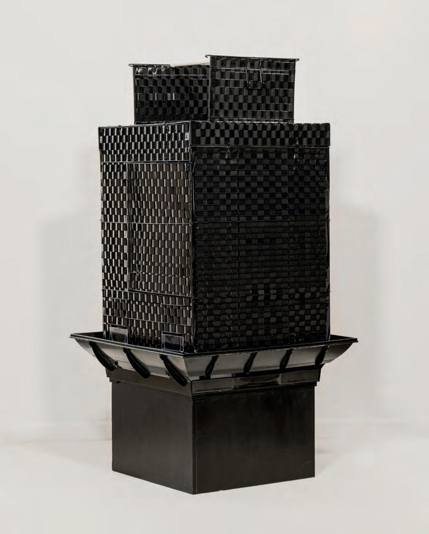 Fabiola Alvarez Yurcisin, Black Cage, 2020, Videocassette tape, double-sided adhesive tape, mirror, and wood base,
