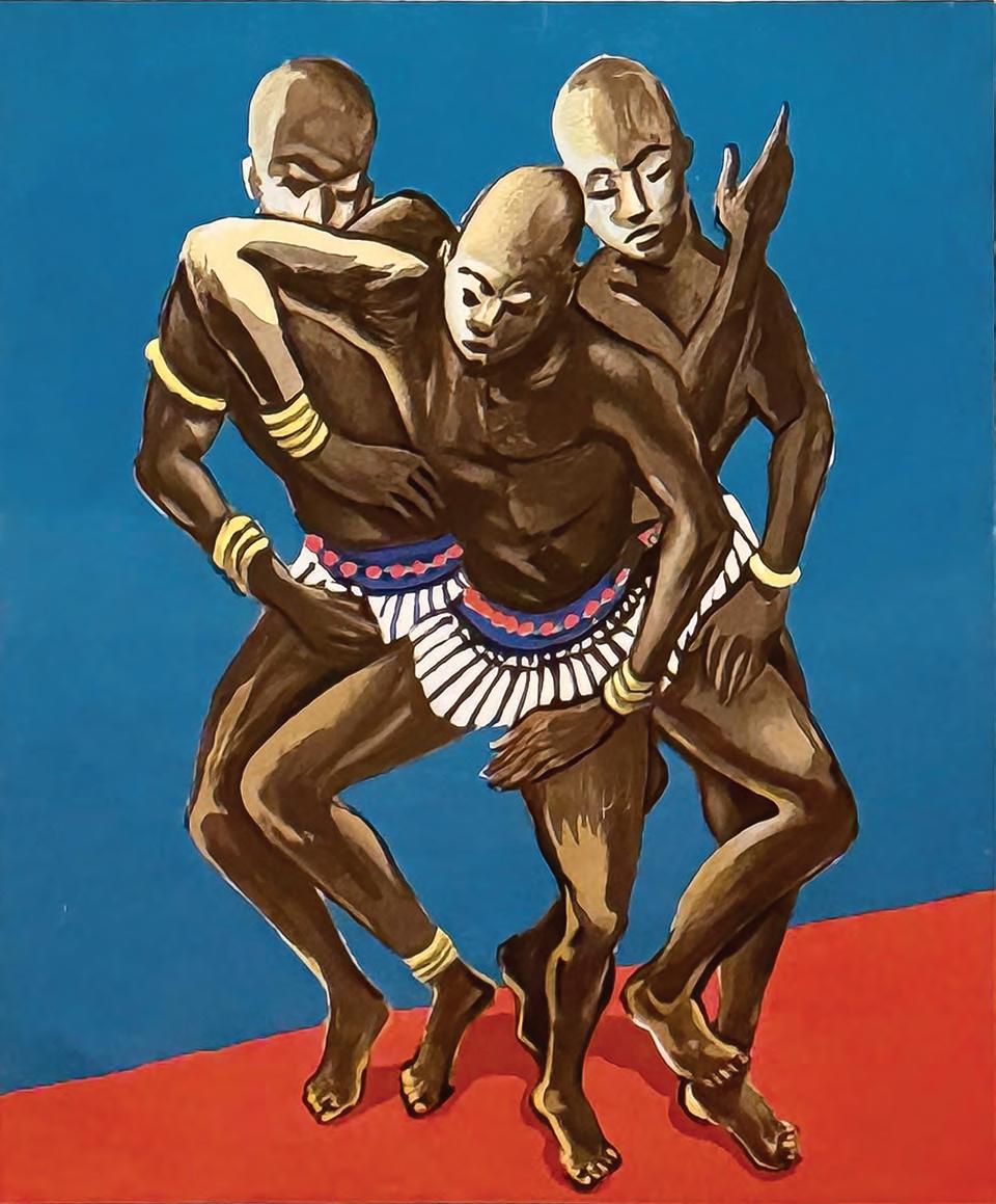 Lois Mailou Jones, Untitled (African Dancers), 1996, Silkscreen print, 271/4 x 24 inches, Collection of Leslie Oliver Ellison
