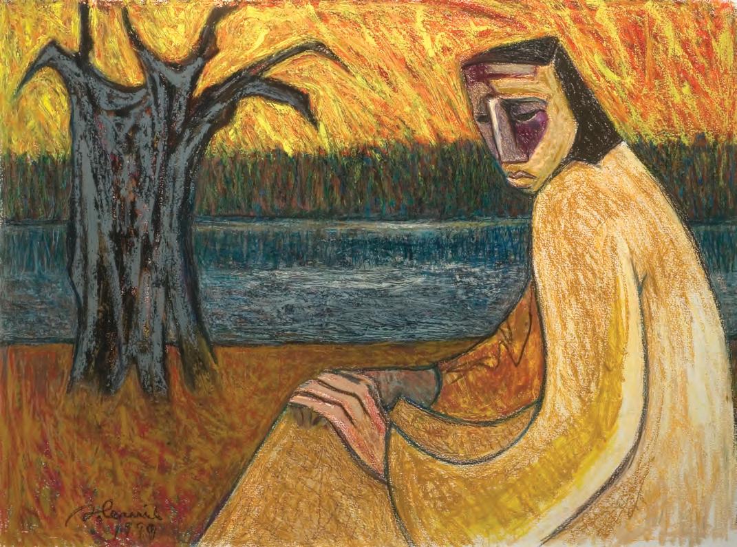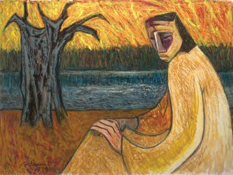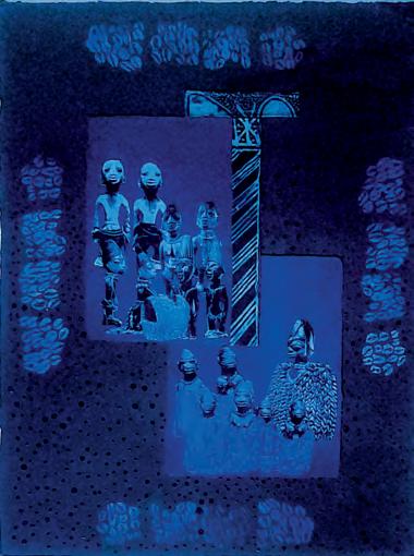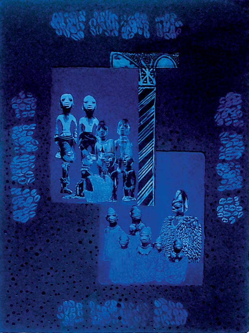 Samella Lewis, Bayou Woman, 1999, Oil stick on paper, 24 x 30 inches, Collection of Eric Key; Patricia Kaersenhout, Invisible Men, 2009, Digital prints, bound book, ed. 750, 101/4 x 7¼ inches,