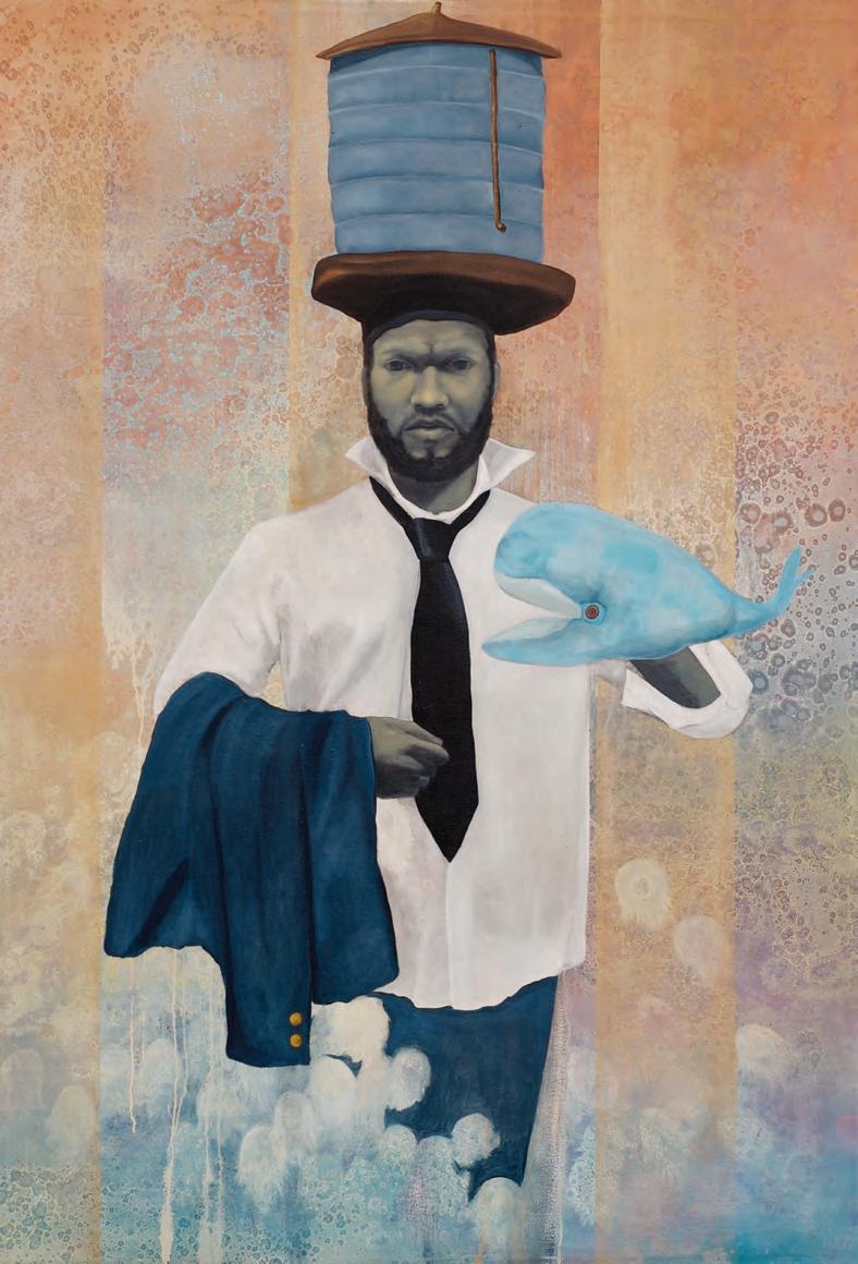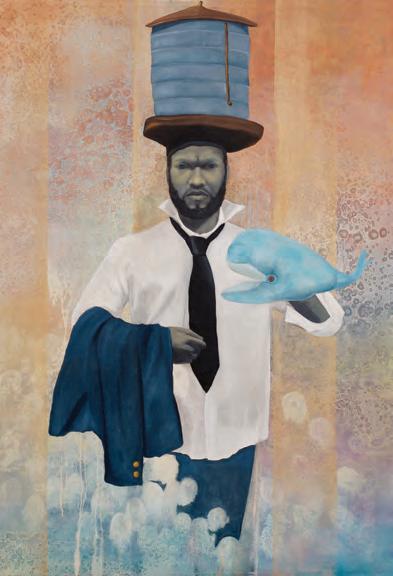 Amy Sherald, Puppet Master, 2008, Oil on canvas, 74 x 521/8 inches, Collection of DC Commission on the Arts and Humanities