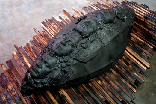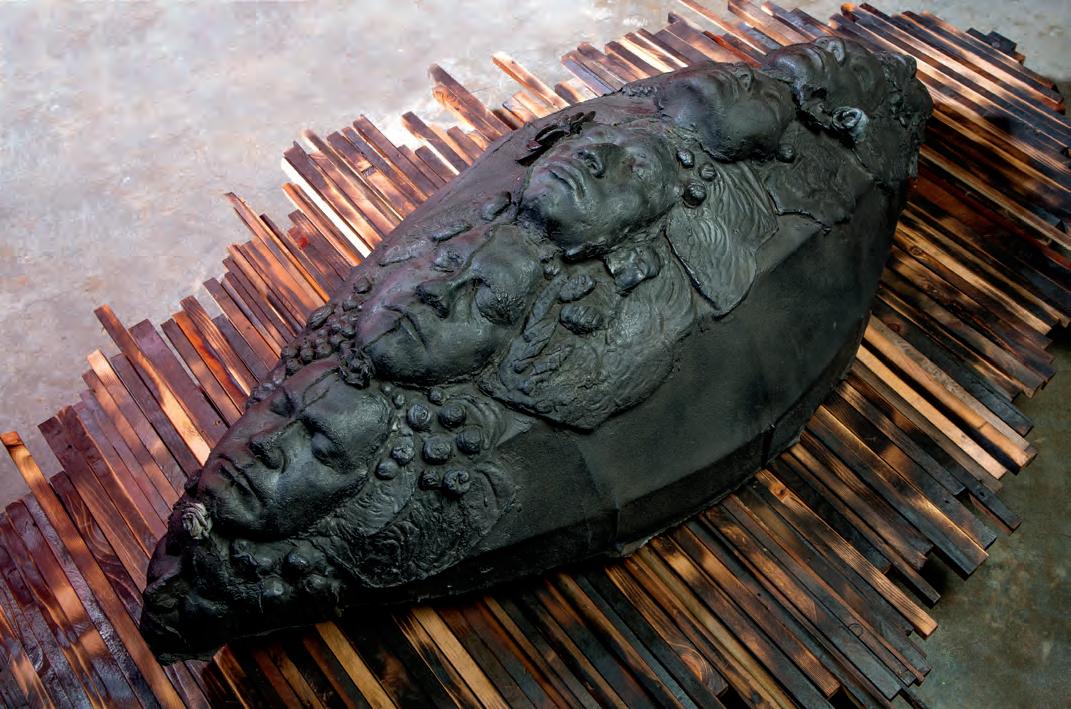 Wilfredo Valladares, Unmasked, 2014, Cast iron and wood, 6 x 4 feet