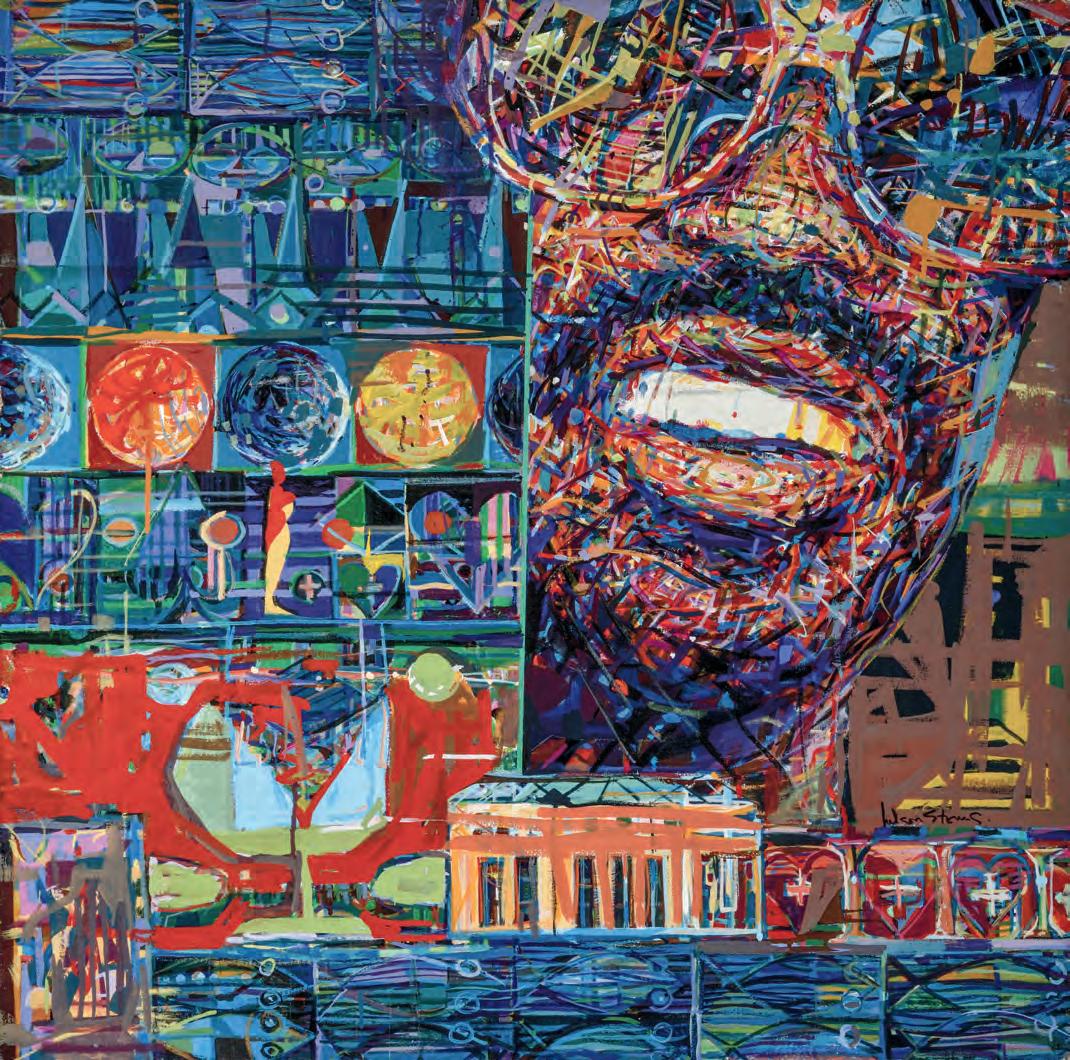 Interconnectivity among these artists reveals shared heritage and collective traditions. Claudia “Aziza” Gibson-Hunter, Lou Stovall, M. P. Alladin, Jacinto “Coco” Galloso, and Alec Simpson reflect their Afro-Caribbean, African American, and African roots through abstraction, conceptual designs, and vibrant use of color. Melanie Royster combines African-Caribbean iconography with Western techniques, creating a visual language bridging cultural divides.
