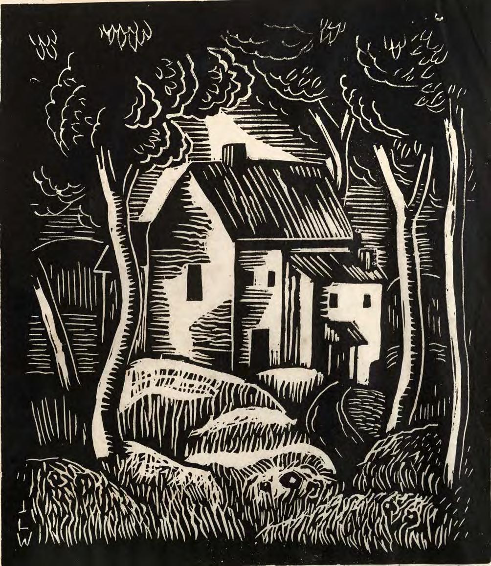 Landscape with House, 1945 linocut on cream paper, 7 impressions, 10¼ x 9 in.