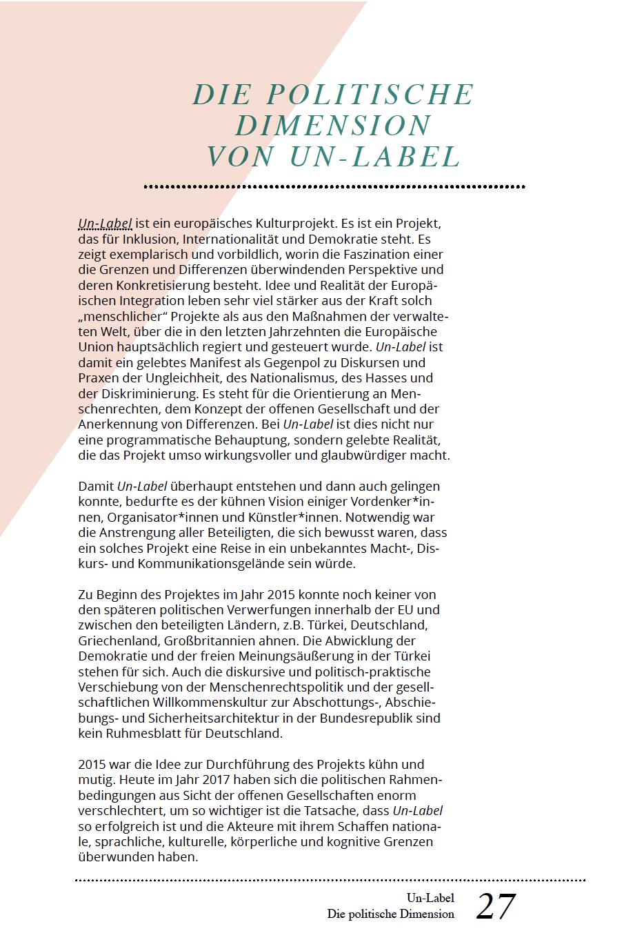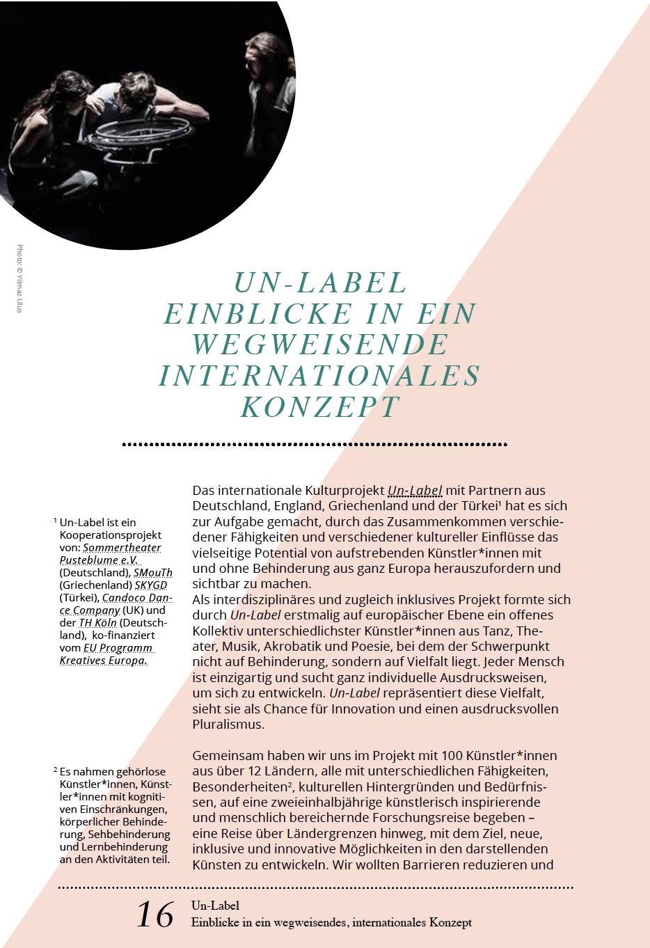 „Diversität bereichert Kunst davon sind wir überzeugt!“ (Reuter, o.J.).