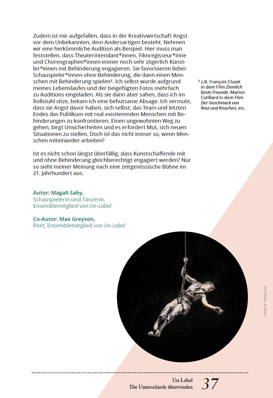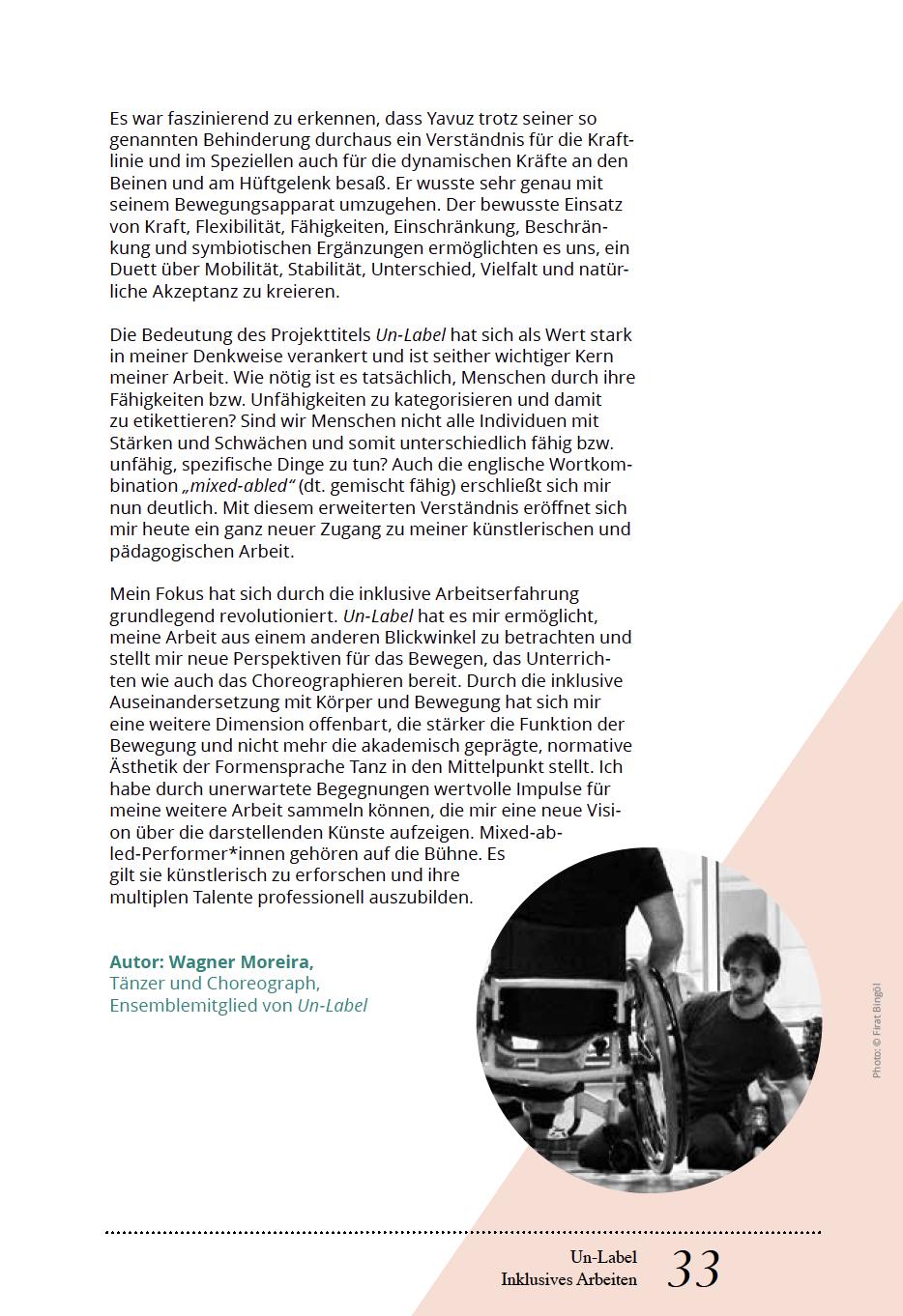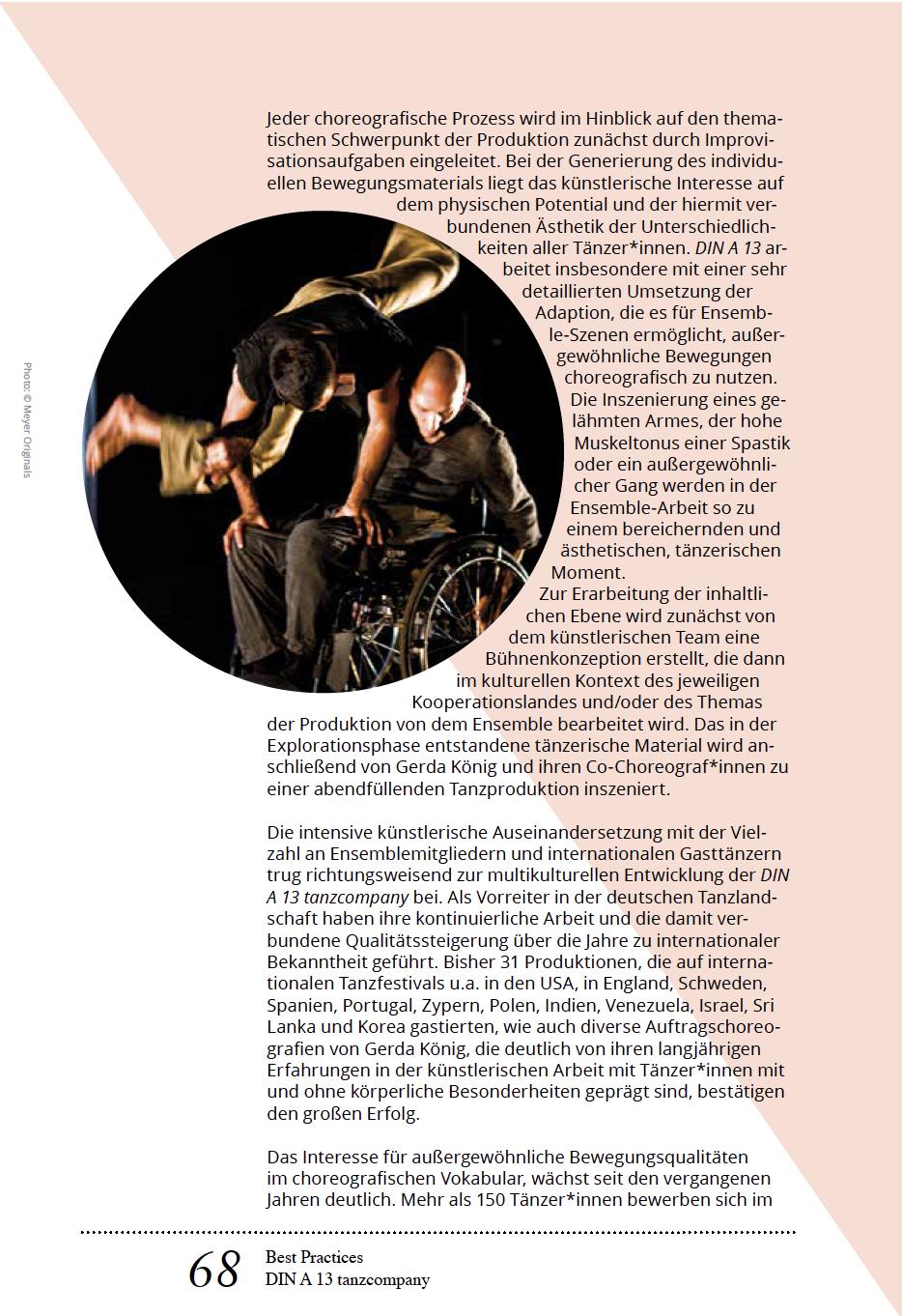 Tanzistuniversellund nonverbal. Daheristes schwerbegreiflich, dasssich Inklusion in diesem bewusst spezifischen Bereich noch nicht ausreichend etabliert hat und Tänzer, die nicht dem Idealbild der Gesellschaft entsprechen, immer wieder in dieLage geraten, erklären zu müssen, dass eine (körperliche)