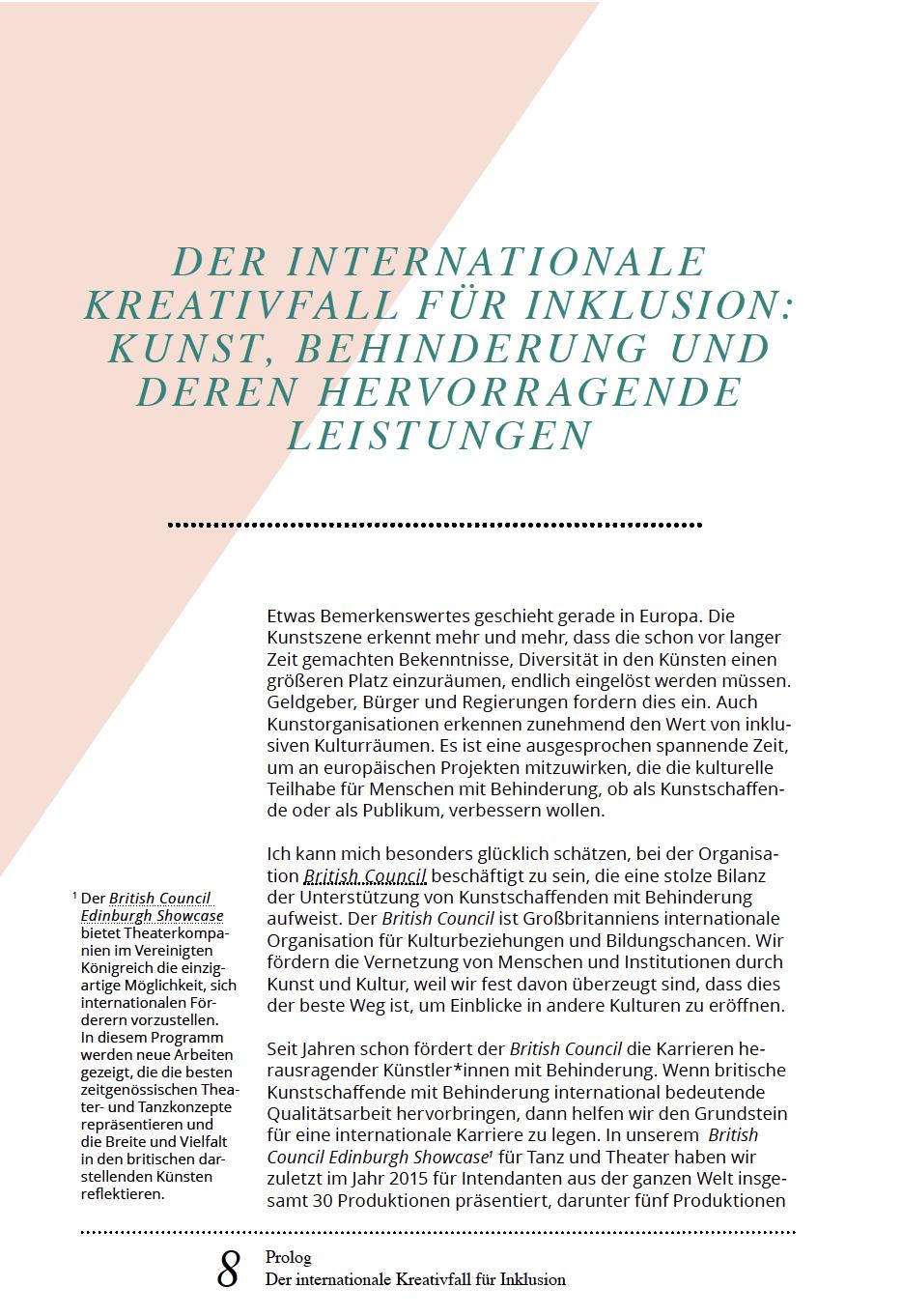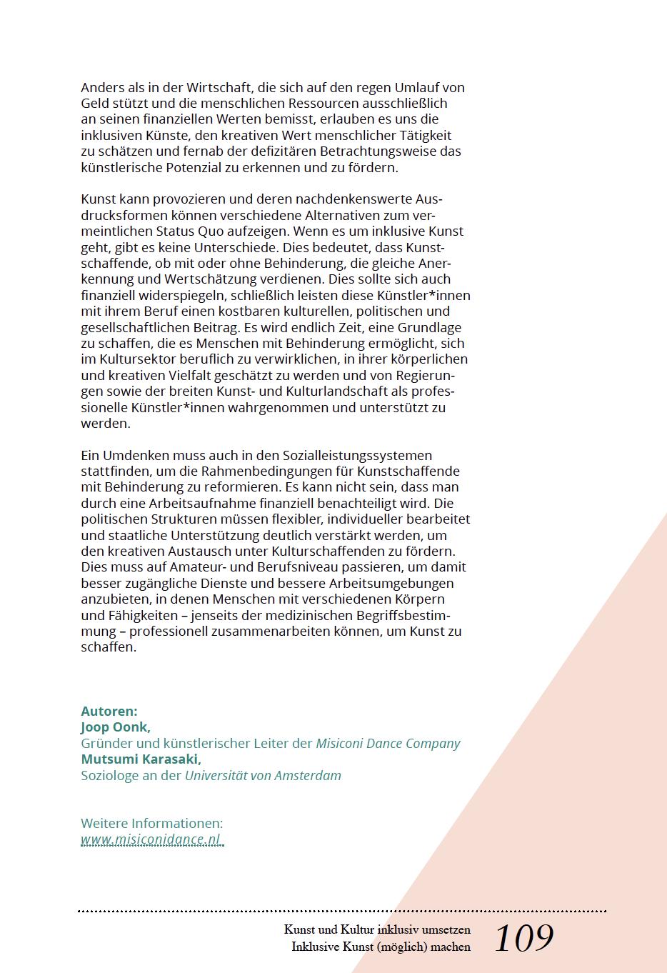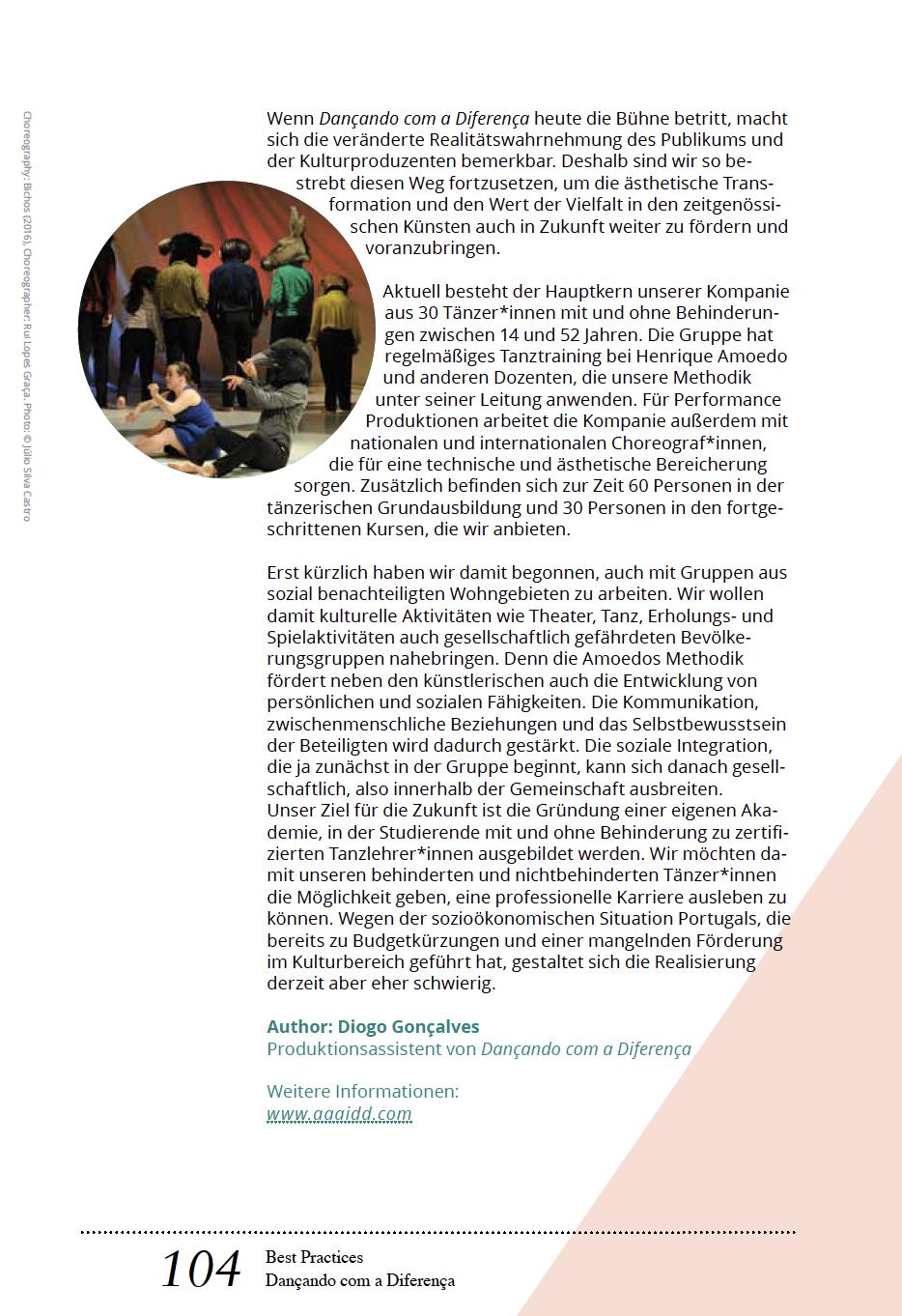 Tanzistuniversellund nonverbal. Daheristes schwerbegreiflich, dasssich Inklusion in diesem bewusst spezifischen Bereich noch nicht ausreichend etabliert hat und Tänzer, die nicht dem Idealbild der Gesellschaft entsprechen, immer wieder in dieLage geraten, erklären zu müssen, dass eine (körperliche)