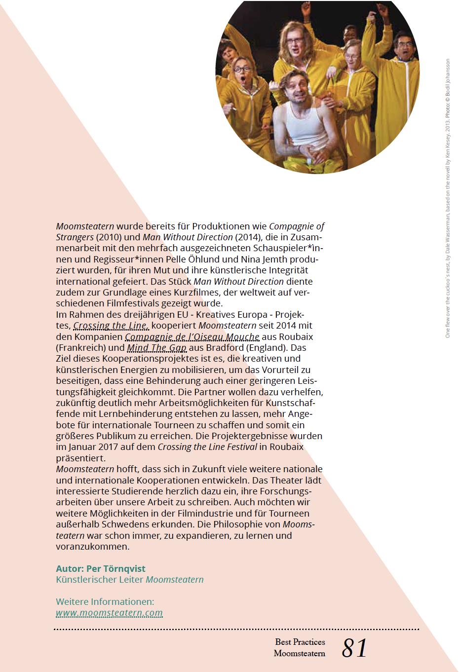 • Einblicke in das inklusive Arbeiten Laden Sie z.B. zu öffentlichen Proben ein und bieten dadurch die Möglichkeit eines direkten Dialoges und gegenseitiger Begegnung.