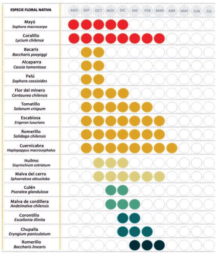 Constancia floral es un concepto útil para explicar la relación de familias de abejas nativas con las flores de los cultivos. El transporte de polen del frutal estudiado por la abeja es una buena aproximación a la polinización exitosa y producción de fruta.
