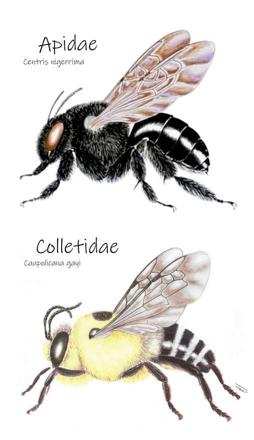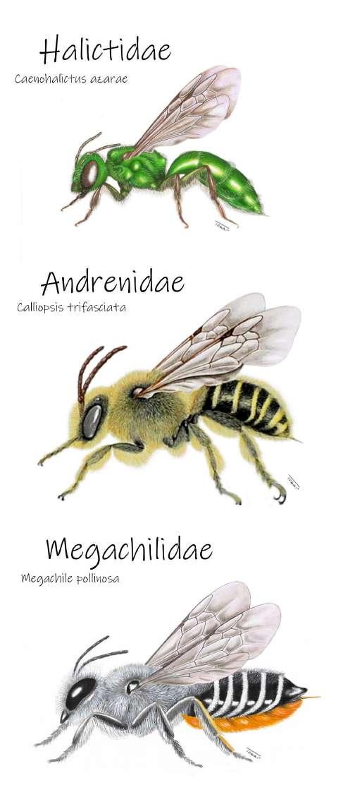 Representantes de las cinco familias de abejas nativas