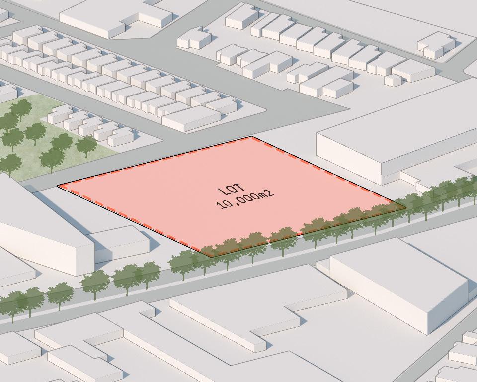 Located in a 100m x 100m lot in between a main road and a residential neighborhood.