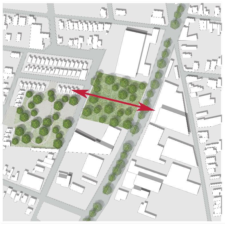 Connect with the main squares of the neighbor hoods through a functio nal street section.