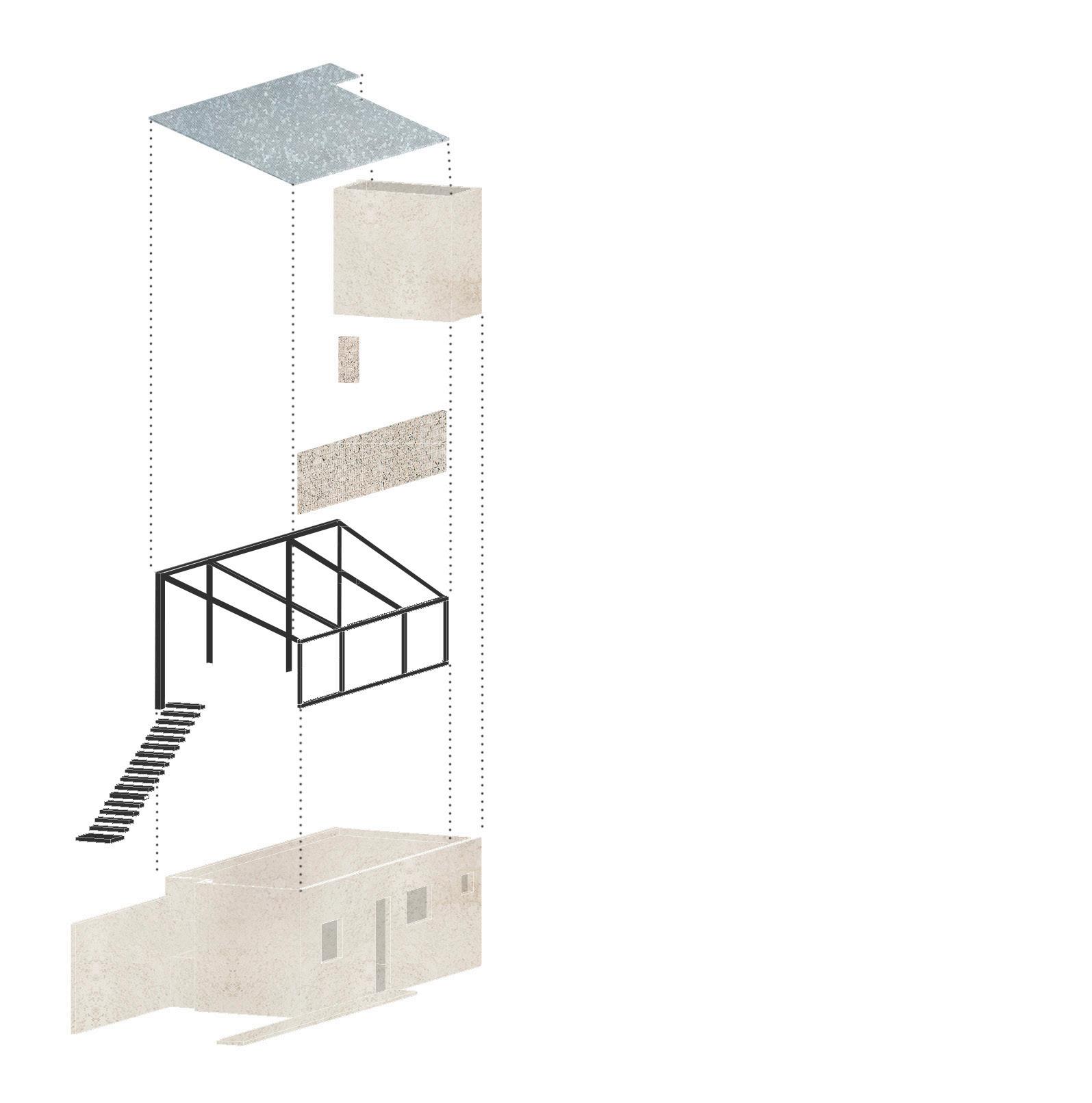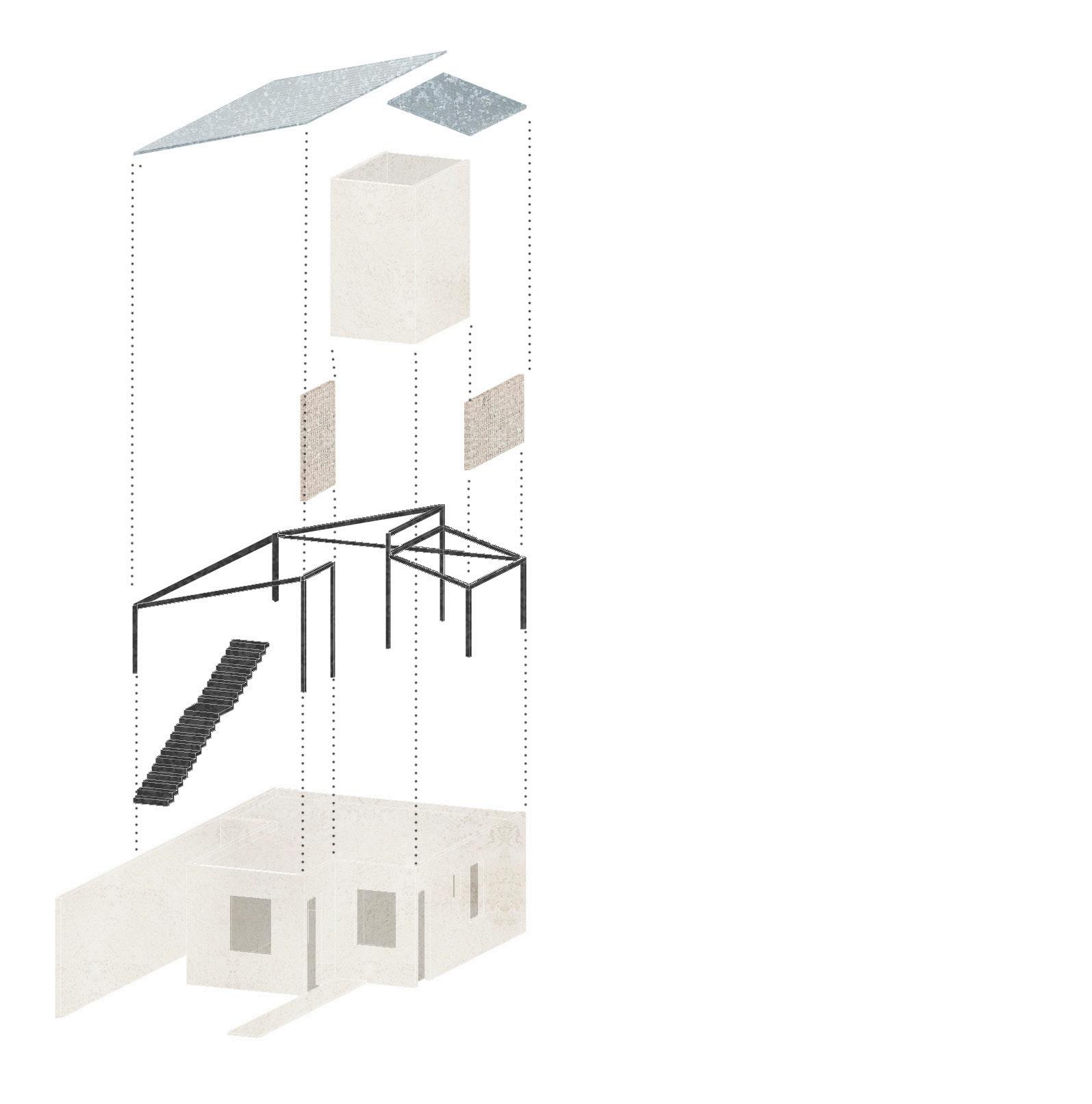 Propose an expantion of the existing houses by adding a light structure that duplicates its habita ble area .