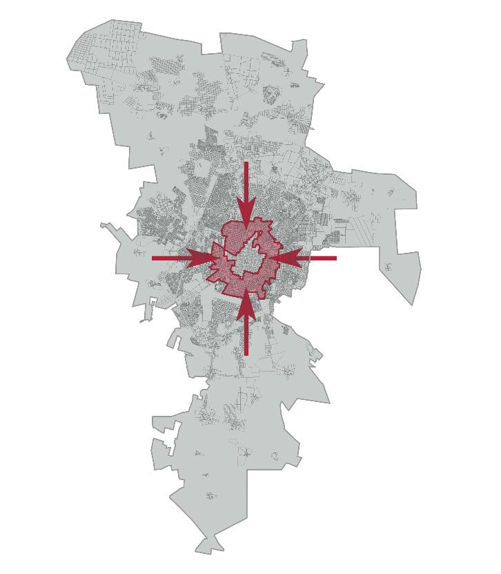Spaces that belong to the public infrastucture of the city. Most are located in the ar eas of lowest density. Urban settlements that once were the perifery but have now been absorbed by the city due to its ex pansion.