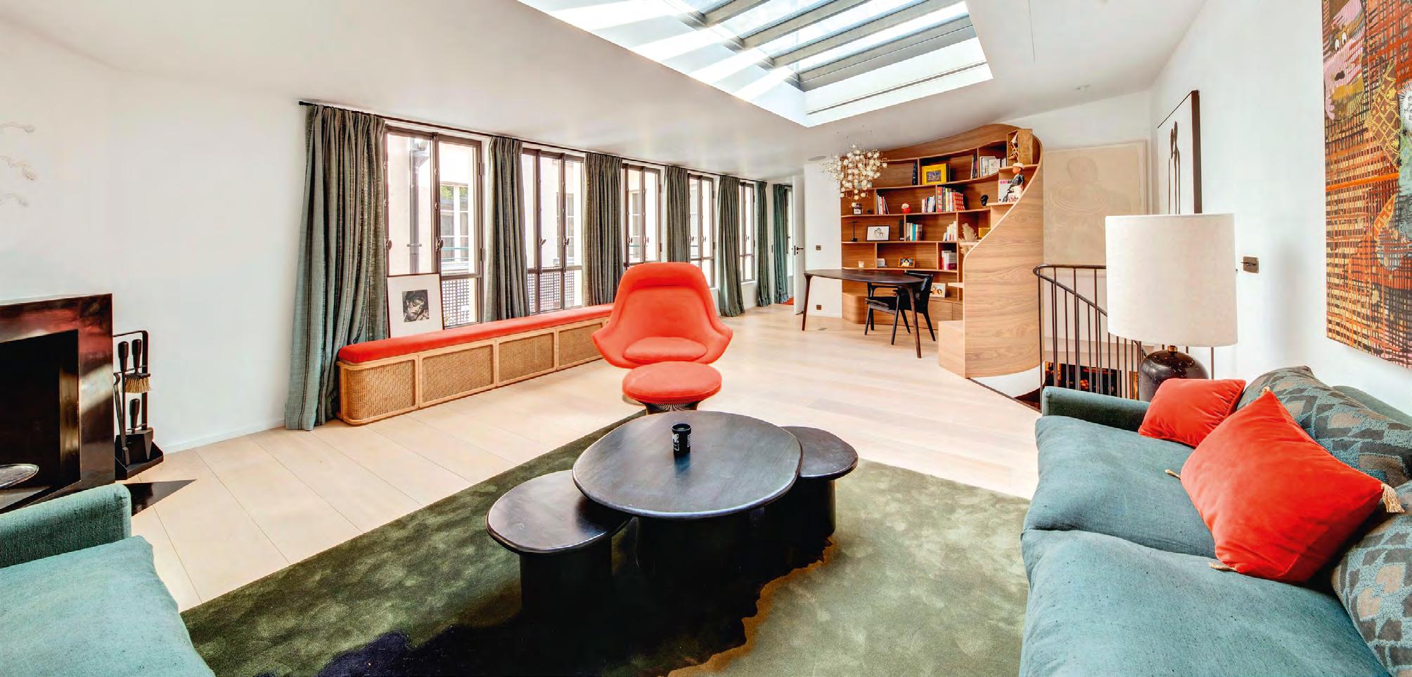 At the heart of the Marais neighbourhood, on the top floors of a renovated building with lift, two magnificent apartments which can be joined, with a total surface of 247 m2 including 58 m2 of terraces.