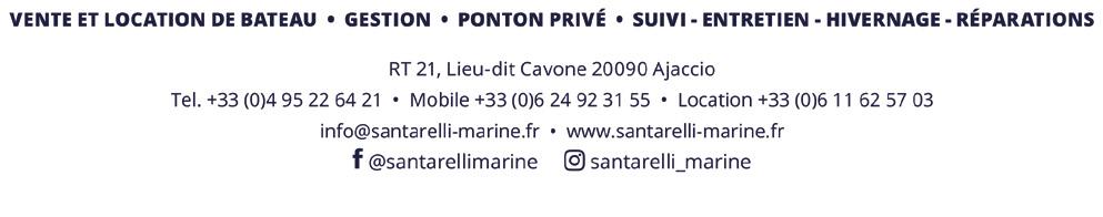 ”What could be better than having a boat and a skipper constantly at your disposal in front of your seaside villa to go shopping in Bonifacio, have lunch in a beach hut in Corsica or Sardinia, dive into the blue waters of a cove, enjoy a drink at sunset...?” With Santarelli Marine, you can have a boat, with or without crew, docked at your house or anchored offshore, ready to go at a moment’s notice, for water skiing, sightseeing, fishing... A precious way of life for unforgettable holidays. santarelli-marine.fr - 04 95 22 64 21 - Location : 06 11 62 57 03