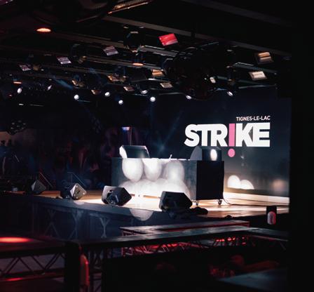 Lieu de vie nocturne unique en son genre avec 220 m² d’écran LED, une immense scène, des espaces VIP aménagés dans un School Bus américain, 4 bars … Le Strike est LE bar - club - salle de concert qui reçoit la crème des artistes de la scène nationale et internationale. «Dans ce décor industriel/chic de 1200 m²qui rivalise avec les clubs les plus prestigieux de la Planète, nous avons reçu Orelsan, SCH, Feder, The Avener, Jonas Blue. Notre programmation éclectique de concerts privés d’envergure et d’événement concept font vibrer les soirées de la station de Tignes».