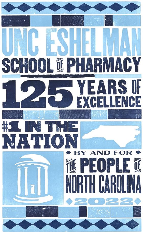 The pharmacy school was established at the University of North Carolina in 1897 in response to urgent requests from the pharmacists of the state. In 2022, we reflected on the 125year journey that made us the nation’s top-ranked pharmacy school through special events, commemorative swag, and sharing stories about the people who make the UNC Eshelman School of Pharmacy excellent.