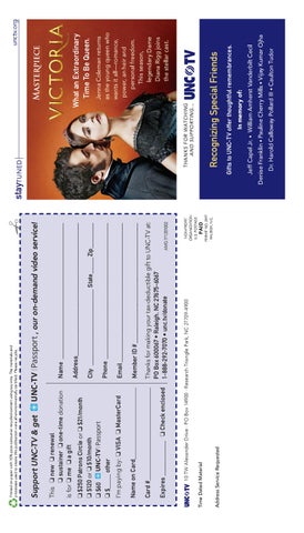 Thanks for making your tax-deductible gift to UNC-TV at: PO Box 600067 • Raleigh, NC 27675-6067 1-888-292-7070 • unc.tv/donate AMG171201002