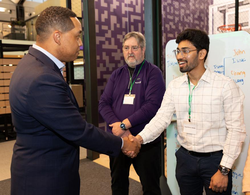 Students like Shameer Garrett (pictured right) benefit from the Truist Scholars program, a four-year renewable $5,000 scholarship, which opens doors to exciting opportunities beyond the classroom. Scholars gain access to exclusive career treks to the Truist Headquarters, where they gain firsthand insights into professional environments. Additionally, they are guaranteed admission into experiential learning programs developed through our innovative partnership with Truist.