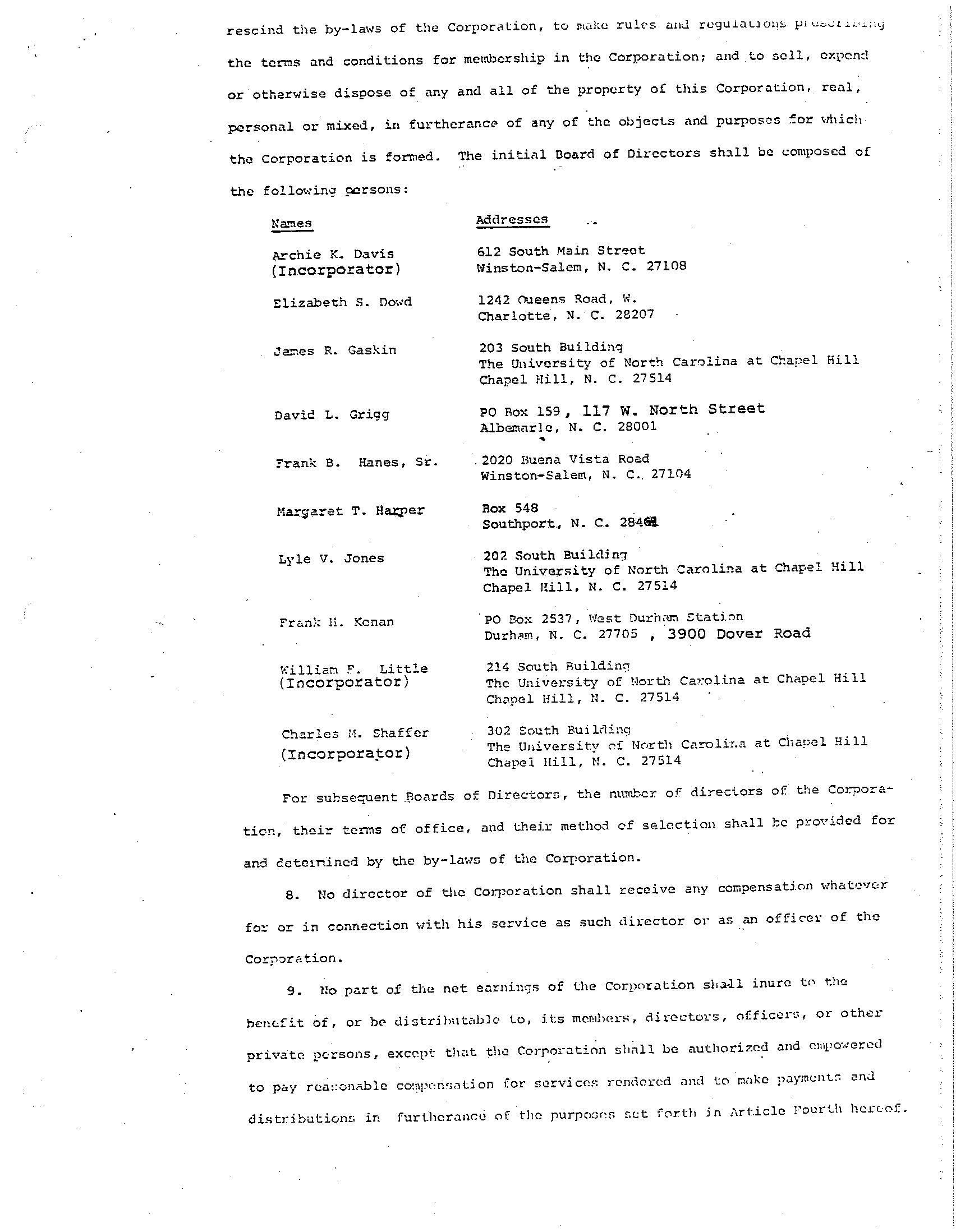 UNC Arts and Sciences Foundation, Inc. Board of Directors Meeting