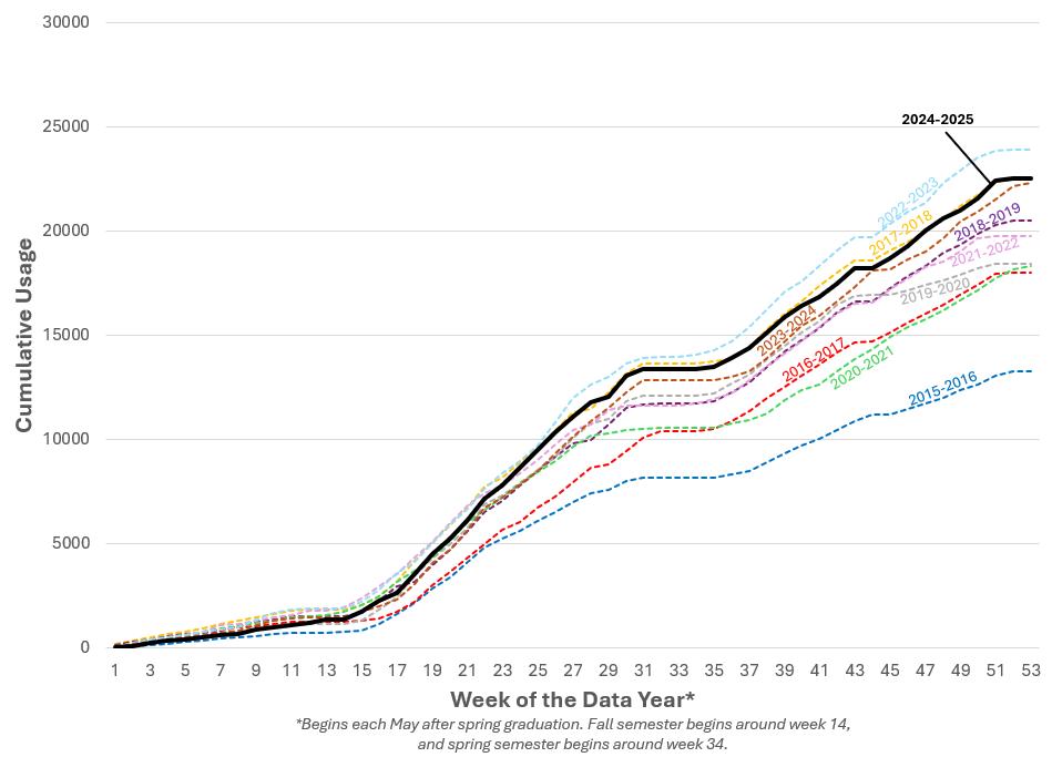 6,396 unique Carolina students used the Writing & Learning Center 22,564 times in 2024-2025, a 1% increase from last year