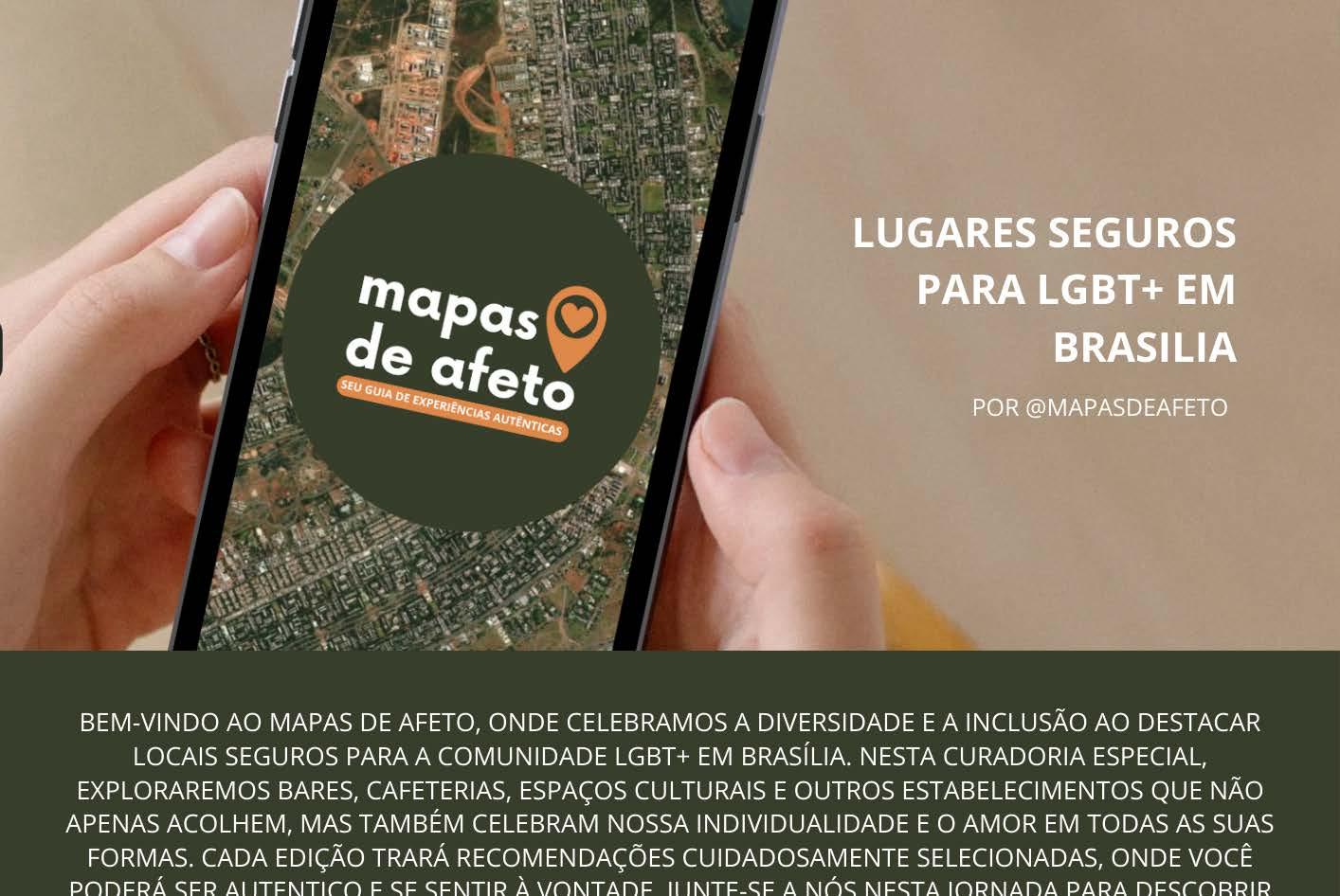Bem vindo ao Mapas de Afeto, onde celebramos a diversidade e a inclusão ao destacar locais seguros para a comunidade LGBT+ em Brasília. Nesta curadoria especial, exploraremos bares, cafeterias, espaços culturais e outros estabeqlecimeqntos que não apenas acolhem, mas também celebram nossa individualidade e o amor em todas as suas formas. Cada edição trará recomendações cuidadosamente selecionadas, onde você poderá ser autêntico e se sentir à vontade. Junte-se a nós nesta jornada para descobrir espaços onde a inclusão e a diversidade são respeitadas.