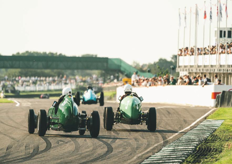 e event’s “Revive & rive” ethos is inspired by a time when “make do and mend” was a way of life rather than a casual slogan. is message – increasingly relevant in the present day – is celebrated with a hub of second-hand style, as well as the lovingly maintained classic cars and motorcycles that fill the paddocks and take to the track. e result is a joyous melting pot of cultures, with immersive experiences around every corner. Visitors are as likely to smile wistfully at a reminder of a past life as gasp at the world’s most valuable historic cars being raced, or laugh at a piece of quirky theatrics. is year’s highlights will include a visit by vintage style icon Dita Von Teese; a tribute to the only man to win world championships on two wheels and four, John Surtees; a playful celebration of the Meyers Manx beach buggy and a parade to mark the 80th anniversary of the D-Day landings. Plus, all the usual staples: an amazing line-up of races with a who’s who of famous drivers; a vintage market and funfair; a drive-in cinema; the Earls Court Motor Show; the Freddie March Spirit of Aviation concours d’elegance and music to dance the (day and) night away.