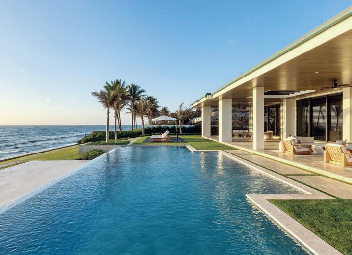 Enjoy architecture and nature in perfect harmony at 1160 S Ocean Blvd. Set between the Atlantic Ocean and the Intracoastal Waterway, with 160 of private water frontage, the estate offers an unrivalled connection to land and sea. In the 25,200 sq main house, a formal dining room and private catering kitchen set the stage for elegant entertaining, while an open-concept kitchen and family area forms the heart of the home. The lower level is a haven of leisure and wellness, with a state-of-the-art gym, wine room, games room and immersive theatre. A separate guest house has its own cabana and private pool, creating a secluded retreat.