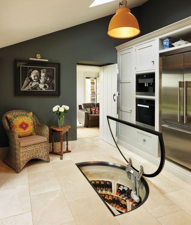 If the collection expands to exceed the confines of the property, a professional cellarage service will be called for. Here, too, high-tech solutions are opening up new possibilities. Baxus, a New York-based startup, stores your wine in climate-controlled vaults in the US and France, and will ship it to you on demand. It also creates an NFT for each bottle to provide indisputable proof of ownership – and allow you to show o! your collection even when you don’t have the bottles to hand. Alternatively, you could hire a specialist to create a bespoke cellar. London-based Spiral Cellars will bore a hole in your kitchen floor, into which they’ll fit a spiral staircase and built-in “bins” to house your collection. A depth of three metres should be enough for 66 bins or up to 1,600 bottles. And the striking signature glass door (pictured), means you can channel 007 every time you go to fetch another cuvée.