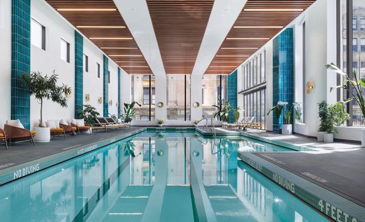 At e Cortland NYC, for example, the facilities rival those of any five-star resort or private members’ club. On top of the screening room, pool and spa –facilities many of us have come to expect – this waterfront condo complex boasts an interactive VR room, children’s play area, a maker space with pottery wheels and 3D printers, yoga and Pilates studios, a treatment room, basketball and squash courts and a golf simulator lounge. ese kinds of creative trimmings can be found in many of New York’s more luxurious apartment buildings. Lantern House, a stunning new development by omas Heatherwick, also in West Chelsea, o!ers a co-working lounge and organises outings for kids, while across the East River in Brooklyn, 11 Hoyt even has a sound-insulated music rehearsal studio.