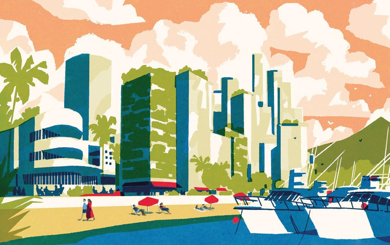 the country to take advantage of the weather – and also the business benefits of lower taxes there.” And when the working week is done, life’s a beach – perhaps a private one, depending on your club memberships. at outdoorsy glamour is complemented by the city’s cultural weight, including the acclaimed Miami City Ballet company and galleries that host one of the world’s biggest art weeks.