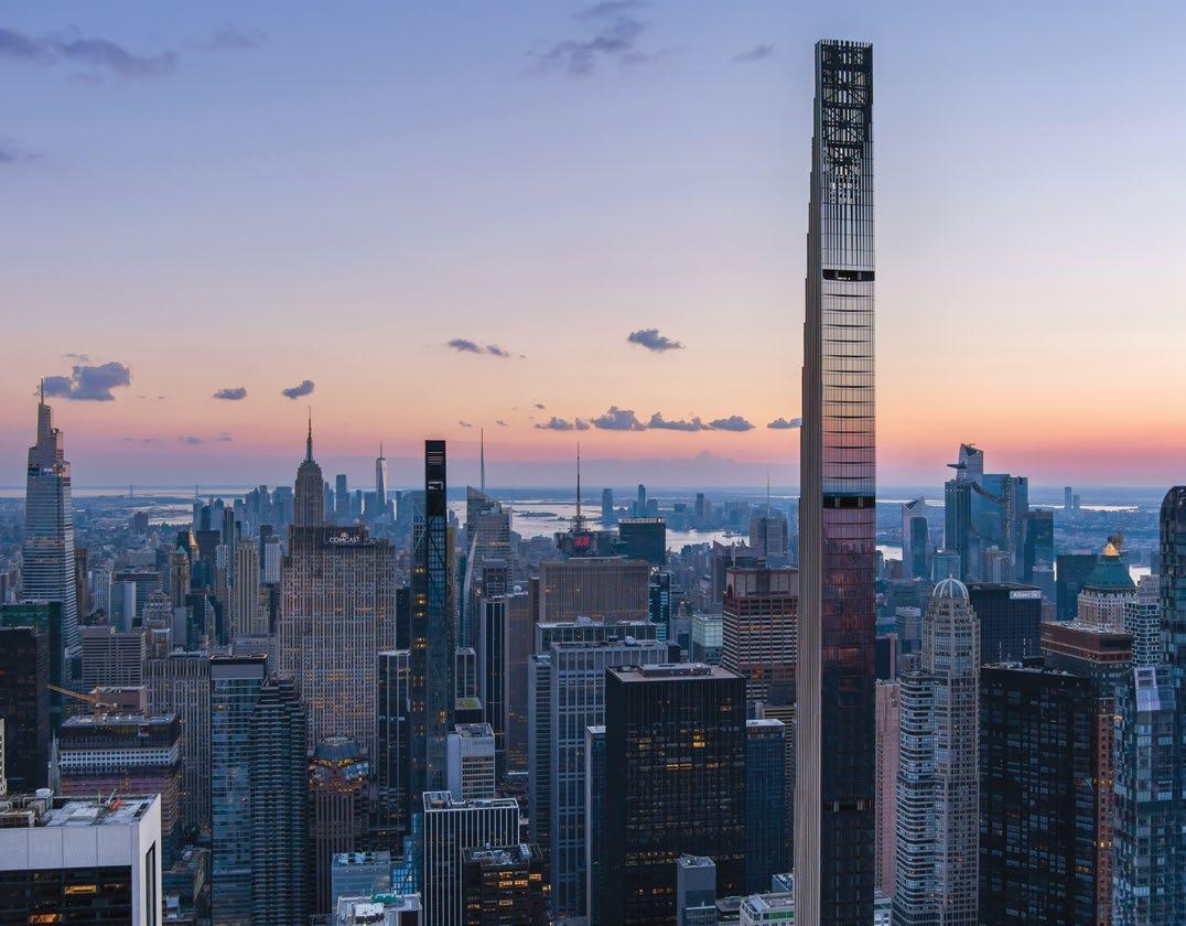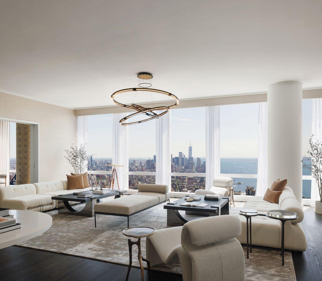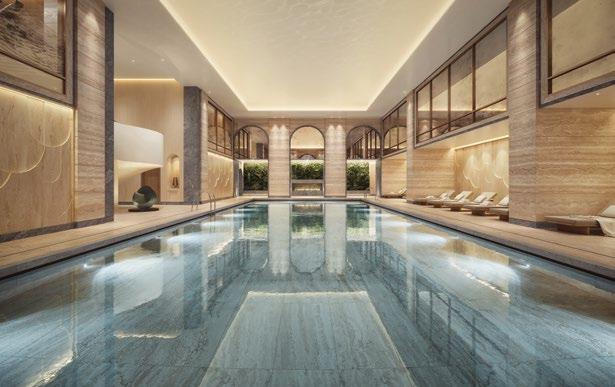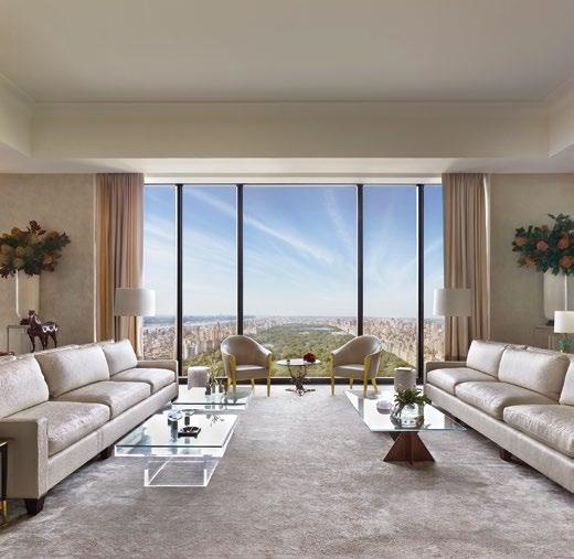 A landmark development with views of Central Park, 111 West 57th Street marries the thoughtful restoration of one of New York’s most cherished landmarks, Steinway Hall, with a soaring 1,428 tower. Richly detailed finishes are conceived throughout by Studio Sofield and demonstrate an extraordinary commitment to cra smanship and quality. The amenities and services offer the utmost in comfort, convenience and security, and include a porte-cochère entrance, an 82 two-lane swimming pool with private cabanas and separate treatment and sauna rooms, a double-height fitness centre, a chef’s catering kitchen and private dining room, a residents’ lounge, meeting rooms, golf simulator, padel court, children’s playroom and dedicated concierge services.