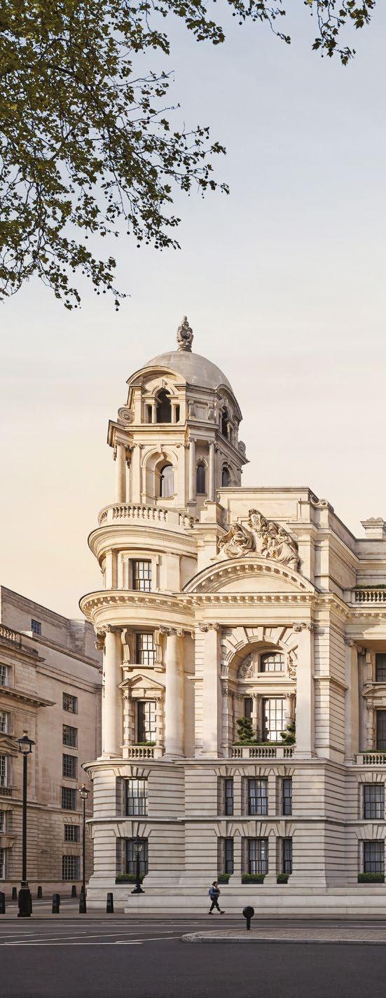Urban developments in London might lack the endless space a!orded in cities like Dubai – whose fanciest new-builds can o!er private beaches, in-house dog parks and yacht-club memberships – but in many cases, they’ve become more imaginative with their hospitality. Homeowners at the Milestone Hotel & Residences can enjoy private performances by members of the Royal Philharmonic Orchestra; Twenty Grosvenor Square is built around a communal “garden library”; and One Bishopsgate Plaza has created its own mindfulness studio. e latter, a new landmark tower in the heart of the City, brands itself as a home with hotel amenities. Expect five-star service: babysitting, grocery delivery, butler service, swimming coaching – essentially, anything you can dream up.