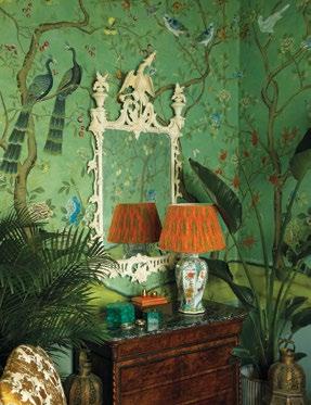 “We love to think of ourselves as painters and our clients as designers,” explains Claud Gurney, founder of de Gournay, the best-known name in the world of hand-painted wallpaper, describing a manufacturing process which is o en bespoke. “If we can help them design beautiful things that we create, then eureka! We have achieved success.”