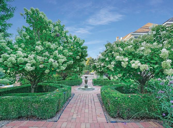 The interior of the home is elegant with refinished oak floors on the main level, along with other luxurious finishes–like the leathered marble countertops in the kitchen.