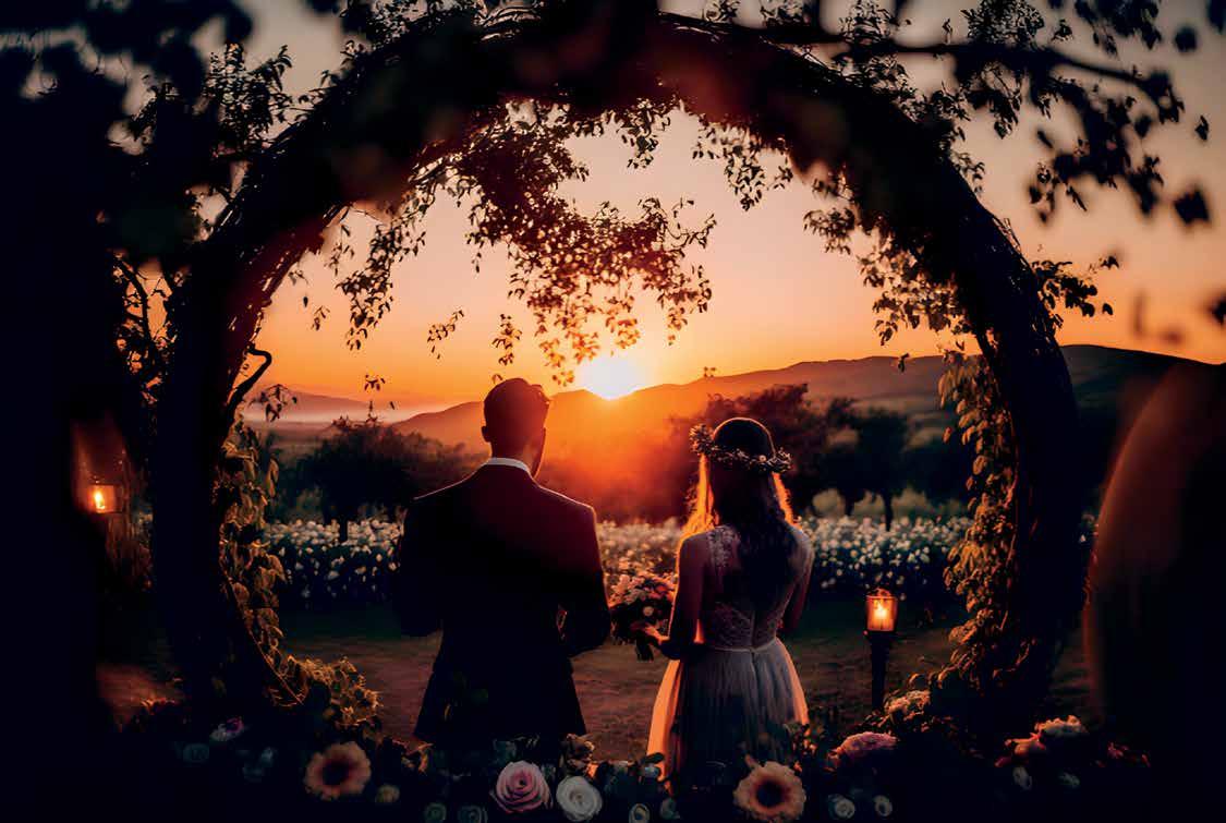 Across a perfect lawn, and through an arbor, a stately round Sailcloth Tent from Skyline Tent Company awaited the guests. I ask you, when was the last time anyone went to a party in a round tent? (Ringling Brothers does not count.)