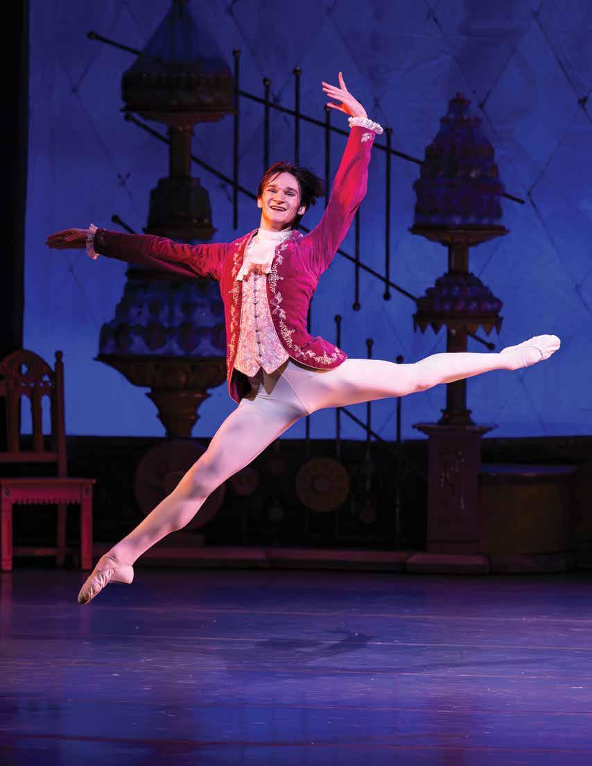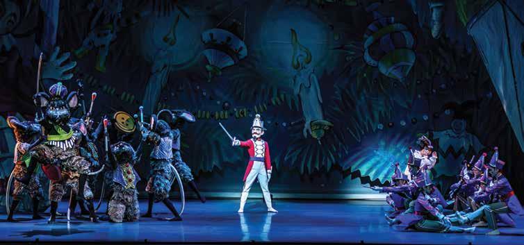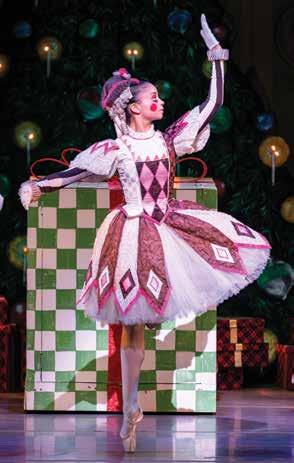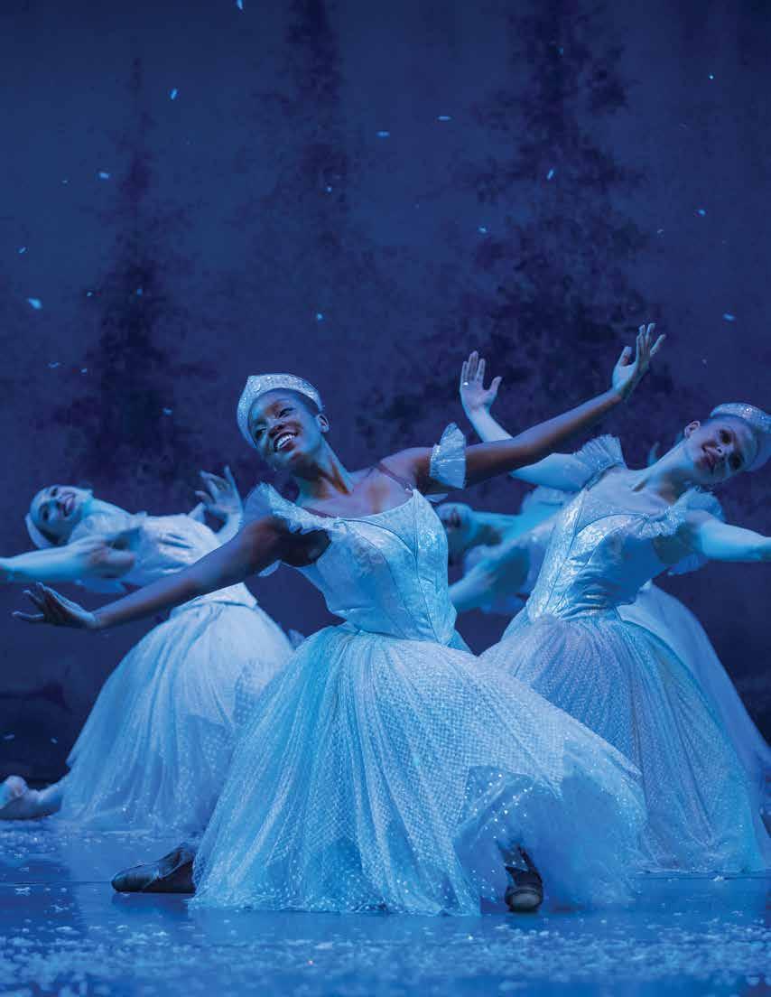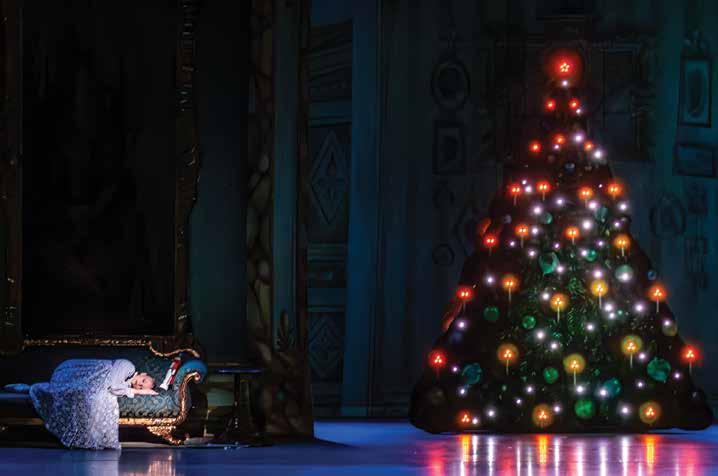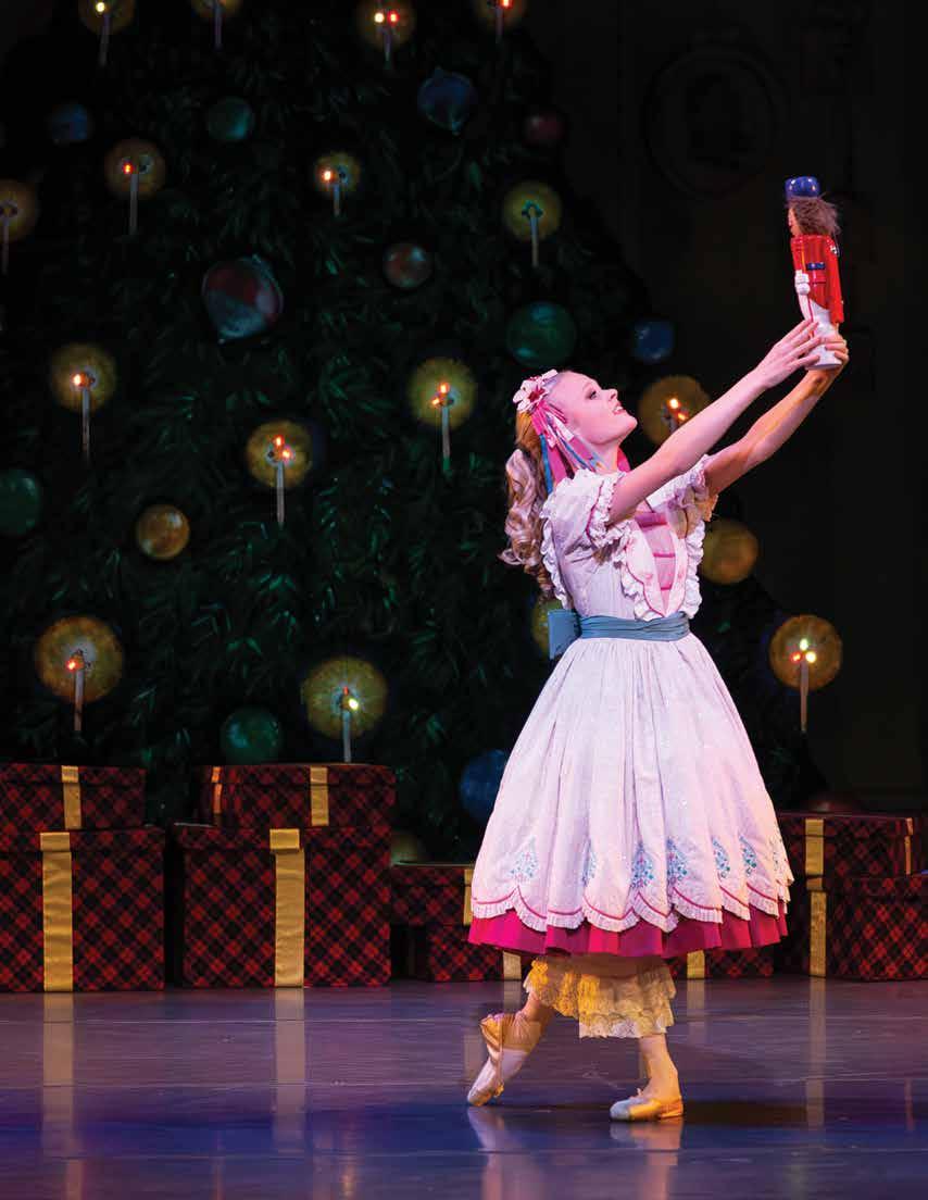 We’re here in Greensboro because our home theater, the Roger L. Stevens Center in downtown Winston-Salem, closed temporarily in November 2023 for a longawaited comprehensive renovation. But sometimes challenges bring fortuitous opportunities. Thanks to our collaboration with the Tanger Center, not only were we able to preserve the “Nutcracker” tradition for our beloved audiences — we also forged invaluable connections with new audiences across the Triad. The collaboration also allowed the university to continue one of its most important production experiences for students. The UNCSA schools of Dance, Design and Production, and Music collaborate to produce the show, with advanced students performing onand off-stage, mentored and supervised by a distinguished faculty of practicing professional artists.