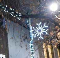 The Christmas tree is illuminated through a custom, student designed and built LED system. Over 300 individual, wirelessly controlled RGB pixels are used to create the flames and the twinkling lights. Forty-five painted ornaments ranging in size from 3 inches to 16 inches add to the beauty.