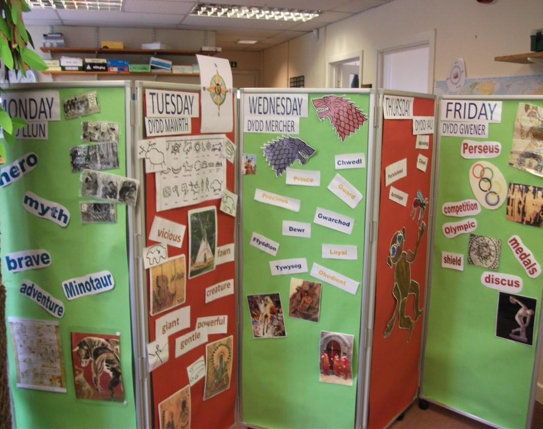 Rydym yn canolbwyntio ar sgiliau darllen ac ysgrifennu, ochr yn ochr â gweithgareddau i ddatblygu iaith lafar.