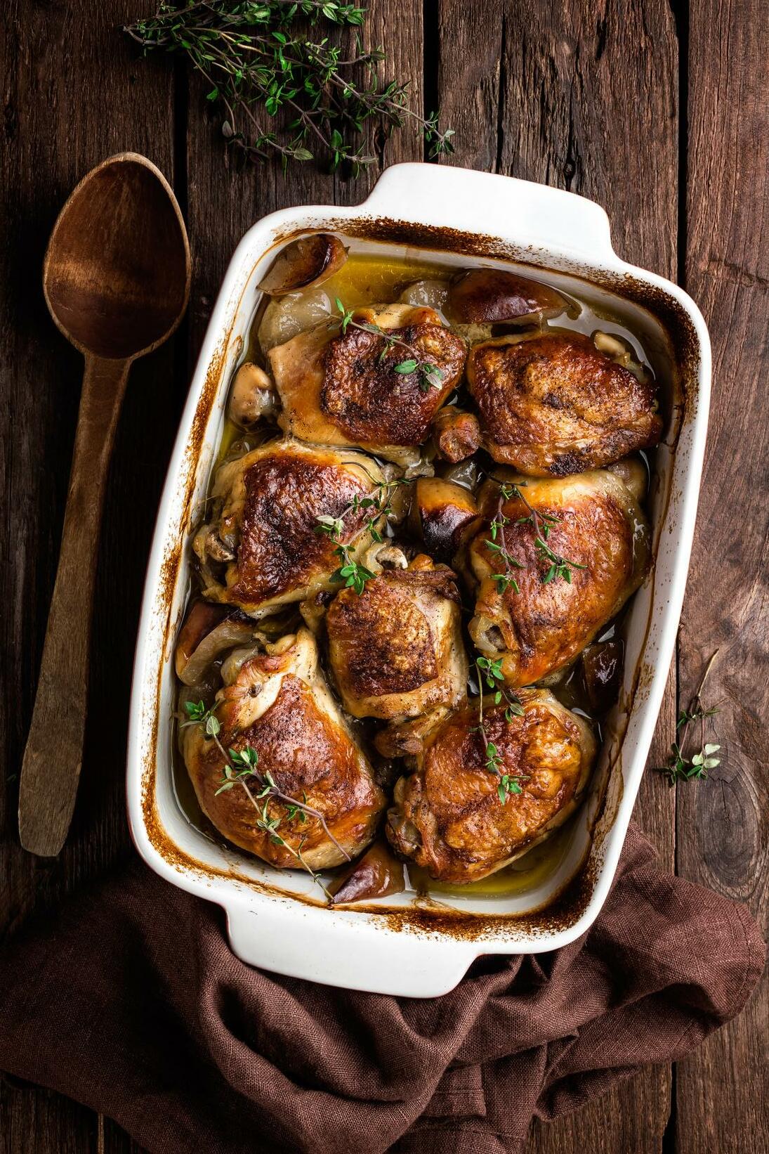 fraiche am lai o galorïau. Gallwch hefyd ddefnyddio olew llysiau i goginio'r cyw iâr.