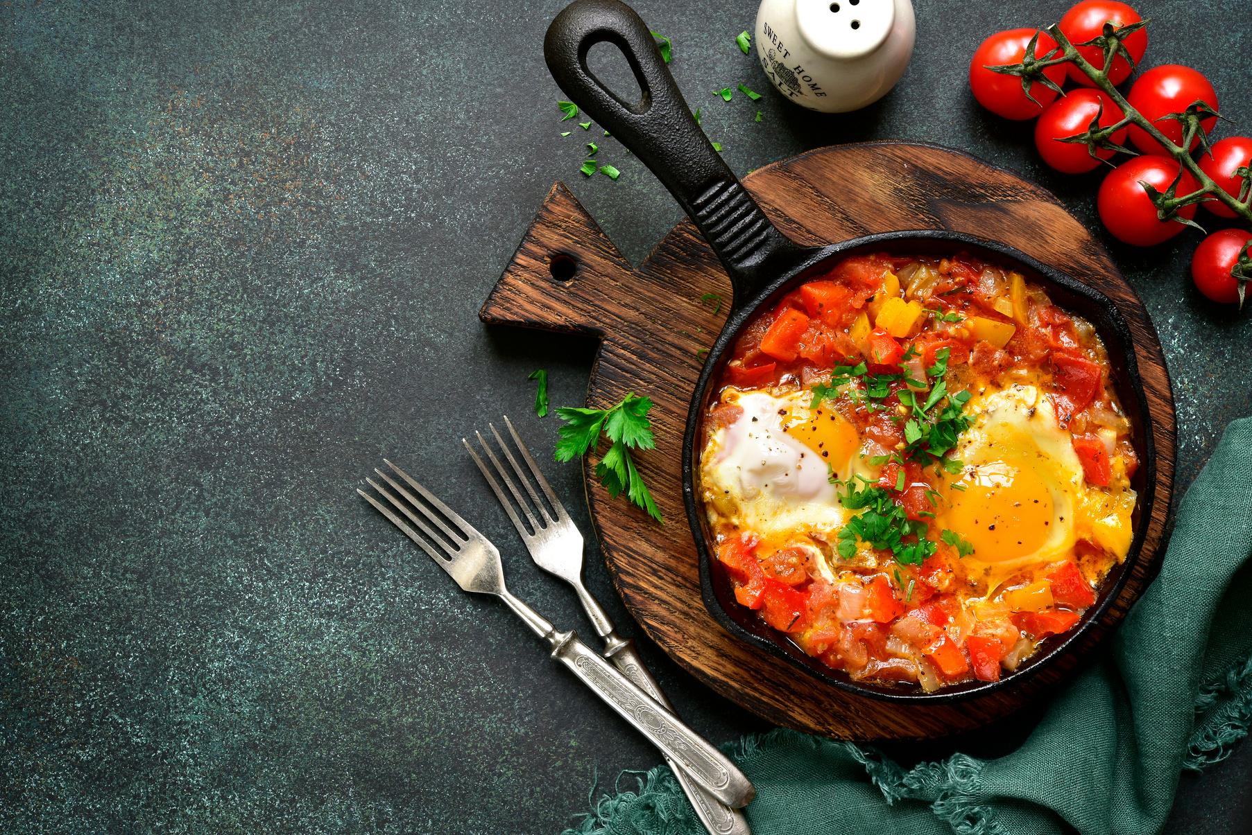 ½ llwy fwrdd o olew olewydd 150g o selsig chorizo wedi'u torri 1 nionyn coch 1 llwy de o Lazy Garlic 1 tin o domatos wedi'u torri (400g) 2 wy Persli fel garnais DULL Stiw Tomato a Chorizo Rysáit gan Pêl rhwyd Barod mewn 15 munud Digon i 2 o bobl C I G