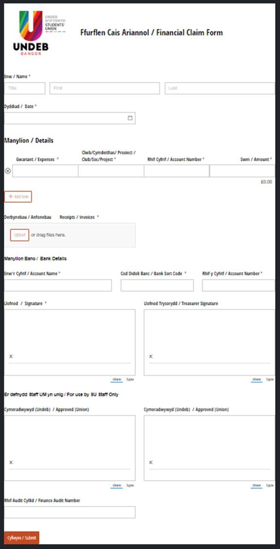 - Ffurflen Gais Anfoneb Noddwr: https://www.undebbangor.com/fina ncial-resources/sponsorship-invoice -request