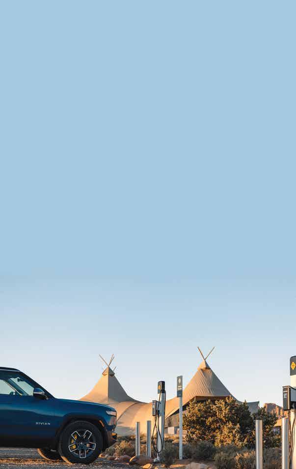 Wi-Fi is intentionally not offered to our guests, so that they can disconnect from technology and reconnect with others. Guests can recharge their electric vehicles with Rivian Waypoint chargers at select camp locations.