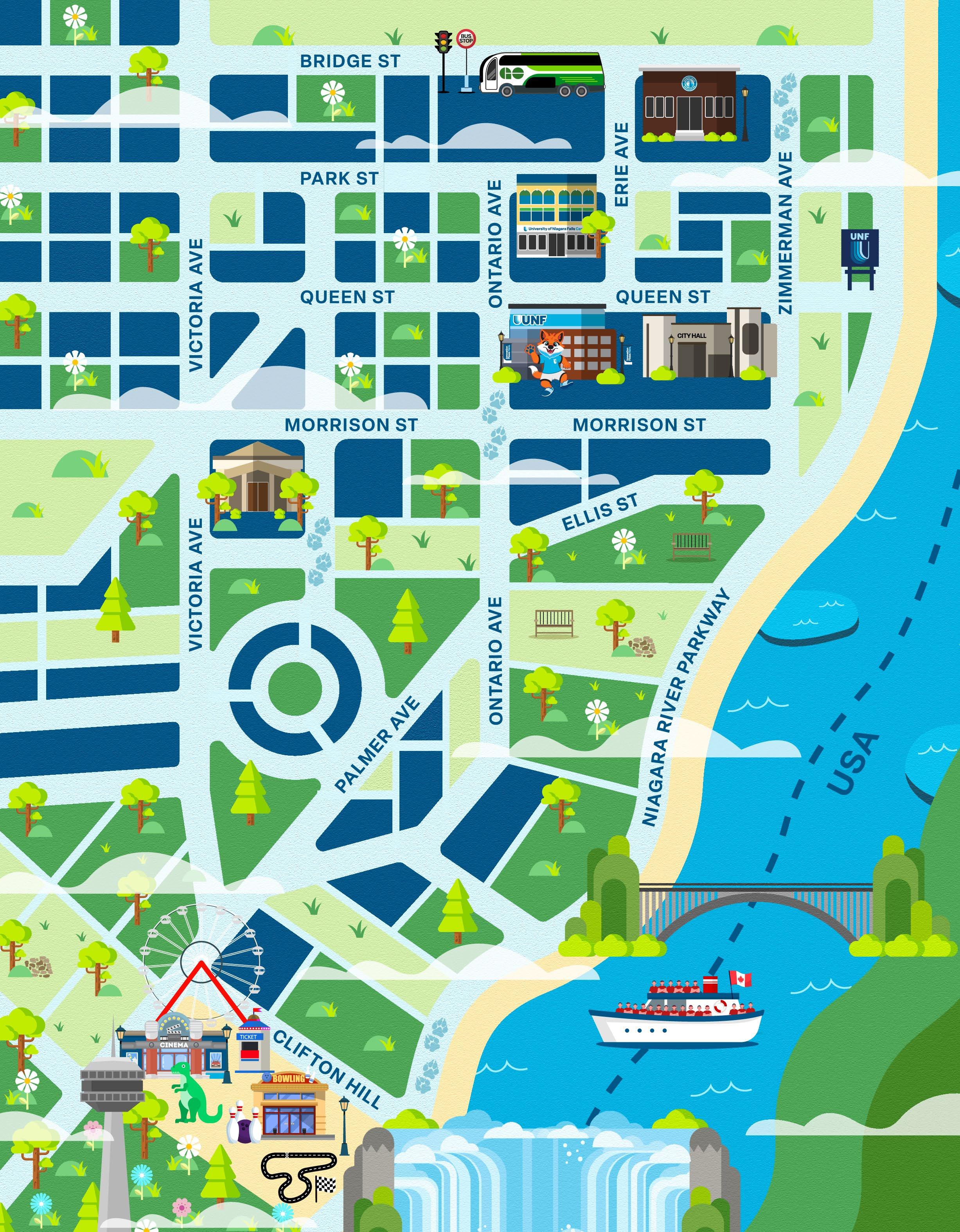 Our campus is located on Queen Street in the heart of downtown Niagara Falls – an area that offers a mix of stunning natural beauty, iconic landmarks, and local charm.